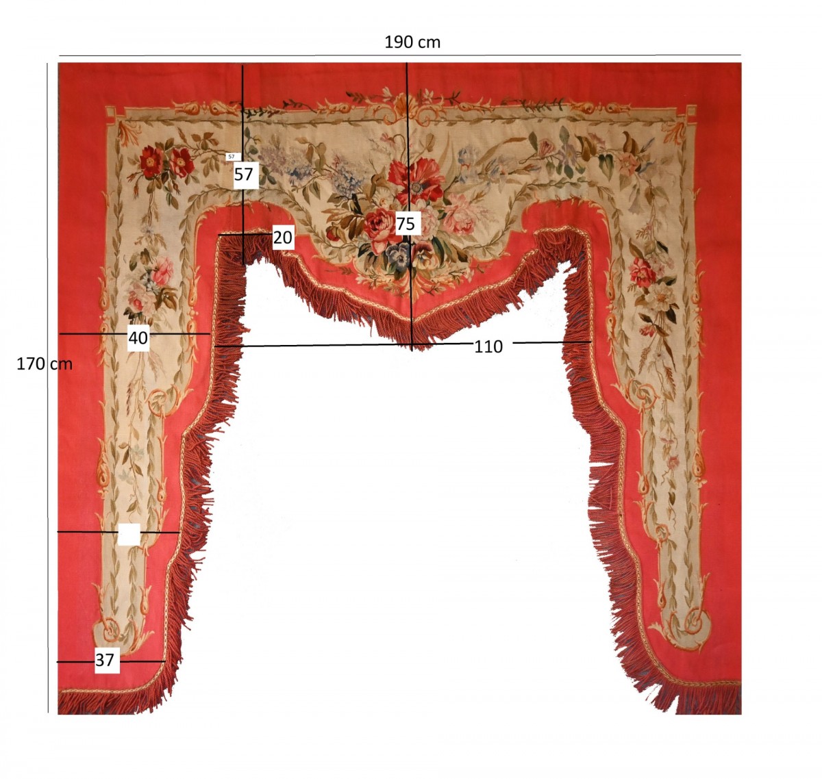 Immerse yourself in the elegance of the Second Empire with this masterful piece from the prestigious Aubusson Manufactory. This window valance (or lambrequin), of remarkable finesse, perfectly embodies the 19th-century taste for opulence and floral naturalism.