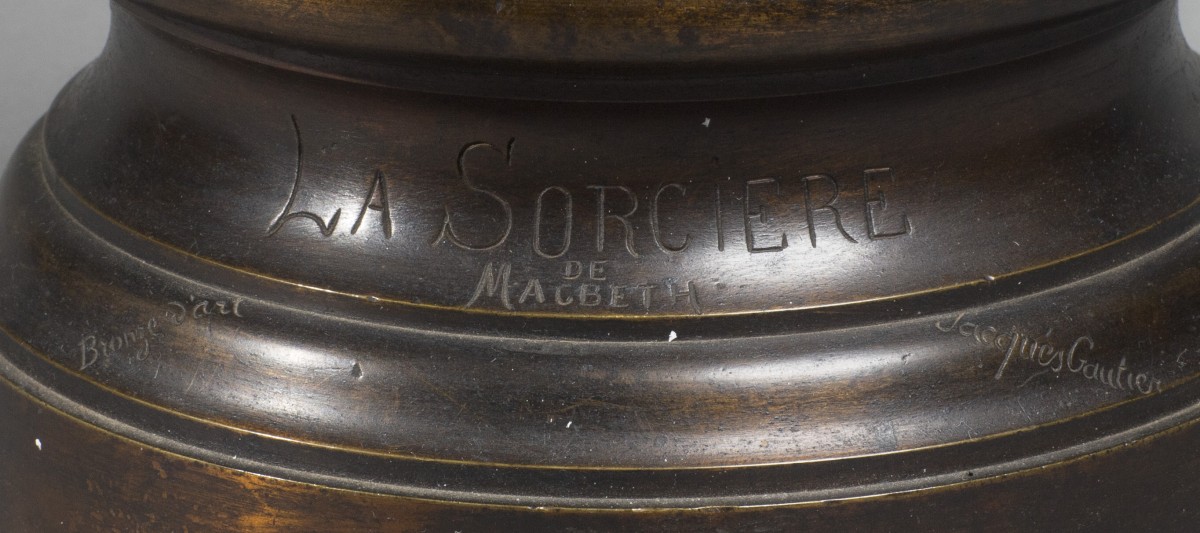 Bronze with rich brown patina, signed « Jacques Gautier » and titled « La Sorcière de Macbeth »