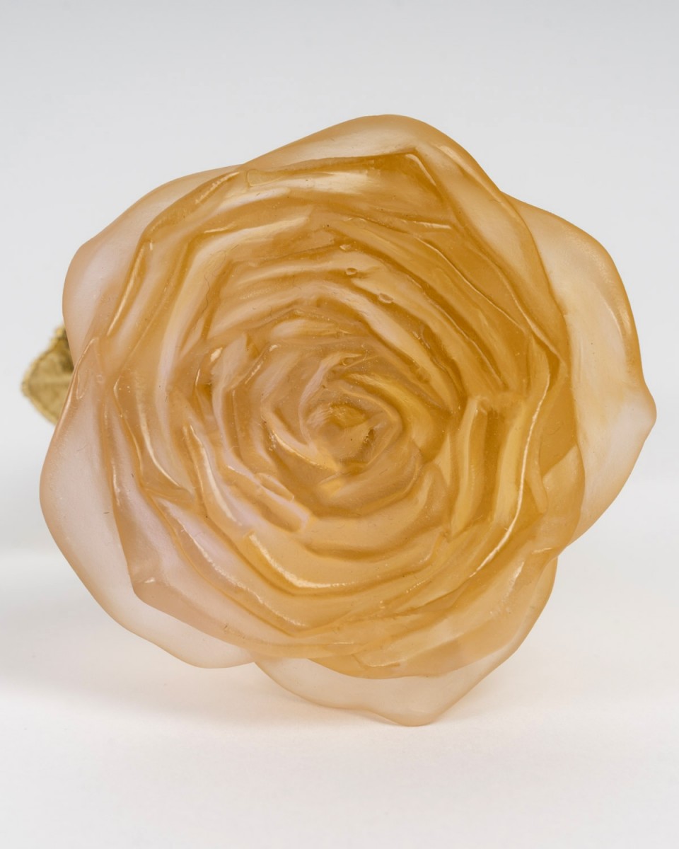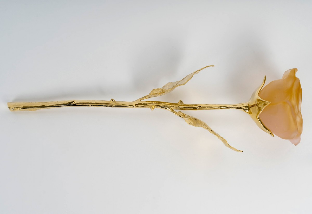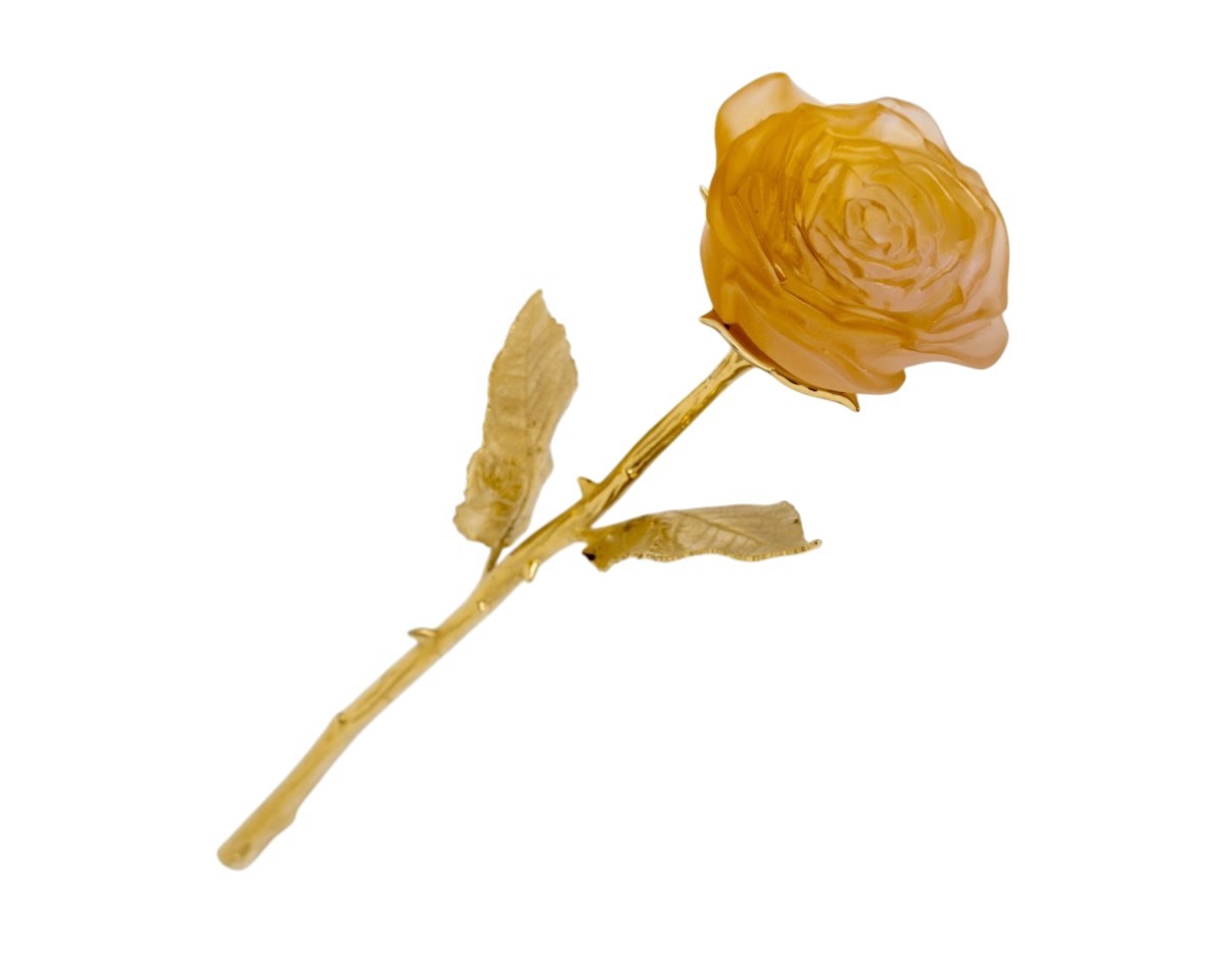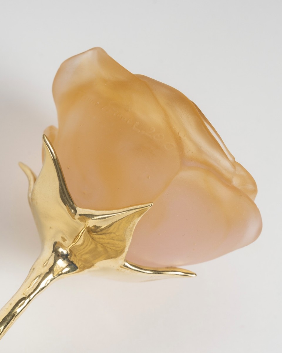 Exceptional "Eternal Rose Orange" made in orange glass pate de verre and gilt bronze by Daum France.