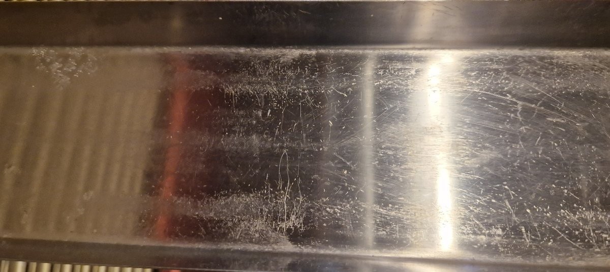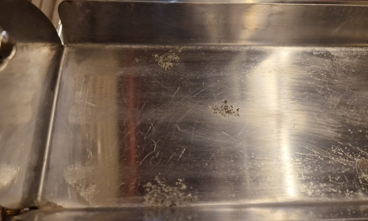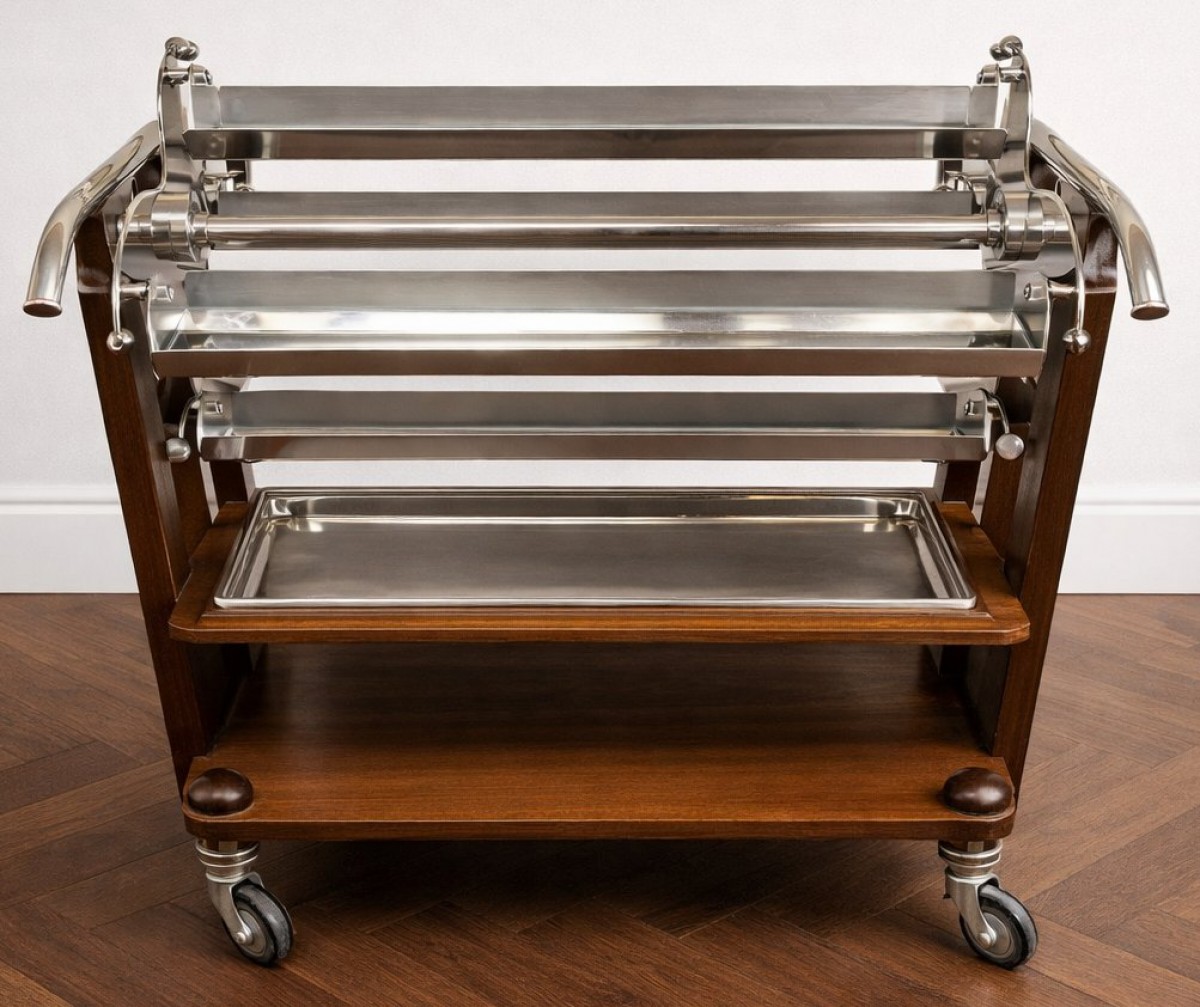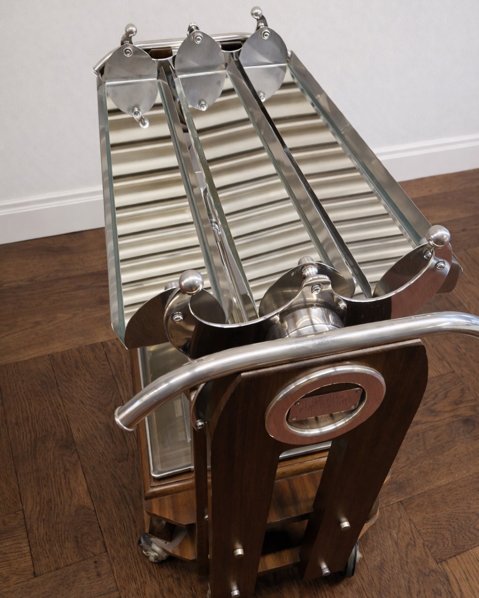 Christofle dessert trolley Length: 98 cm Width: 48 cm Height: 98 cm. In good condition, scratches and some wear on the stainless steel parts under the mirrors.