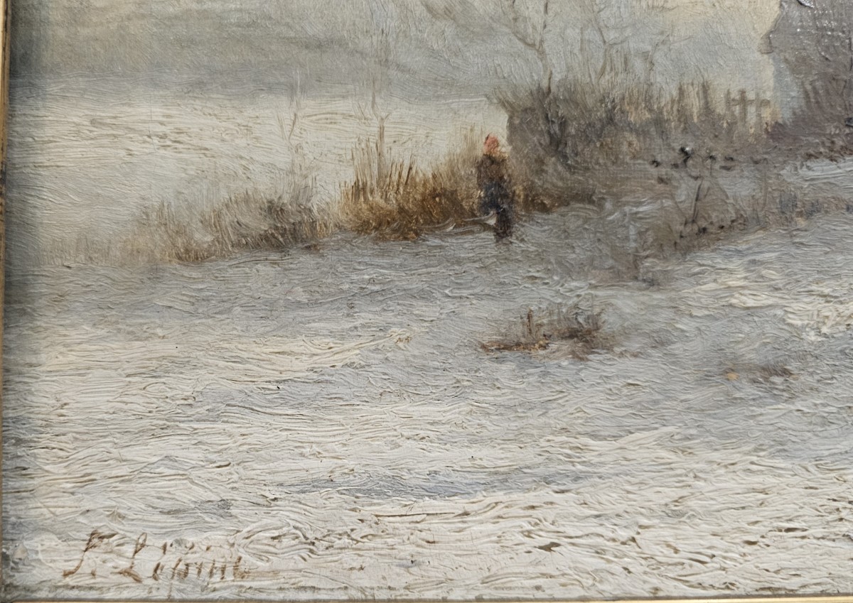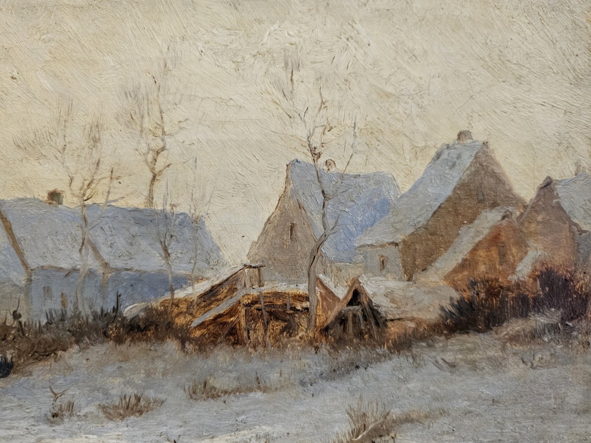 In this landscape, Stanislas Lépine transports us to the snowy countryside of the village of Auvers-sur-Oise. This oil on canvas, with pale hues, nevertheless reflects a peaceful and warm atmosphere thanks to this enveloping light.