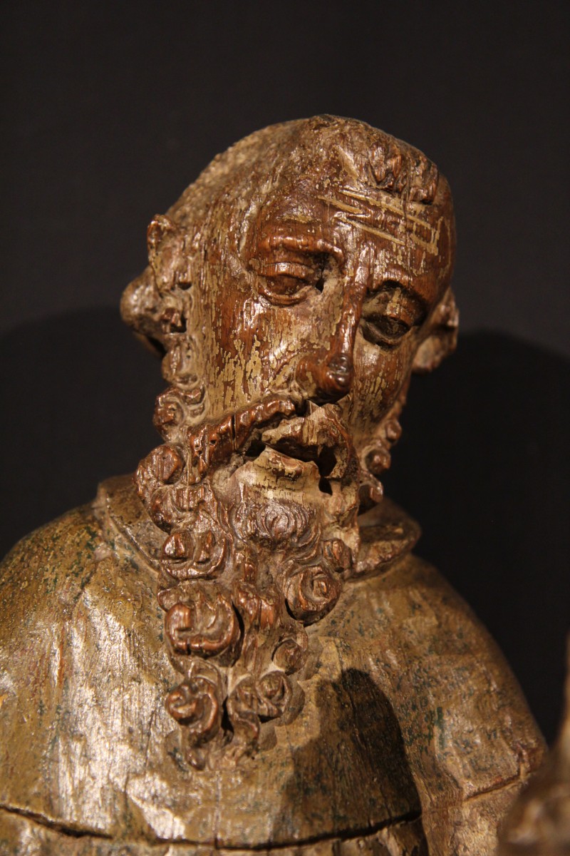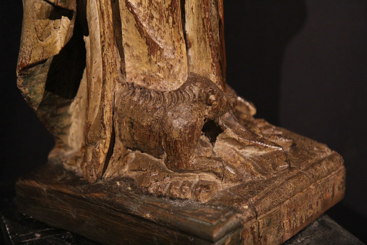 St. Anthony the Hermit. Carved oak statue with traces of polychromy. Widely represented in the Middle Ages, he is considered the father of monks. His remarkable ability to resist pain and temptation led him to be attributed with healing powers. His relics, transferred to the Viennese region in 1070, helped cure the ergot poisoning, also known as St. Anthony’s fire. This led to the creation of the oldest institution of hospital order : the Antonines.