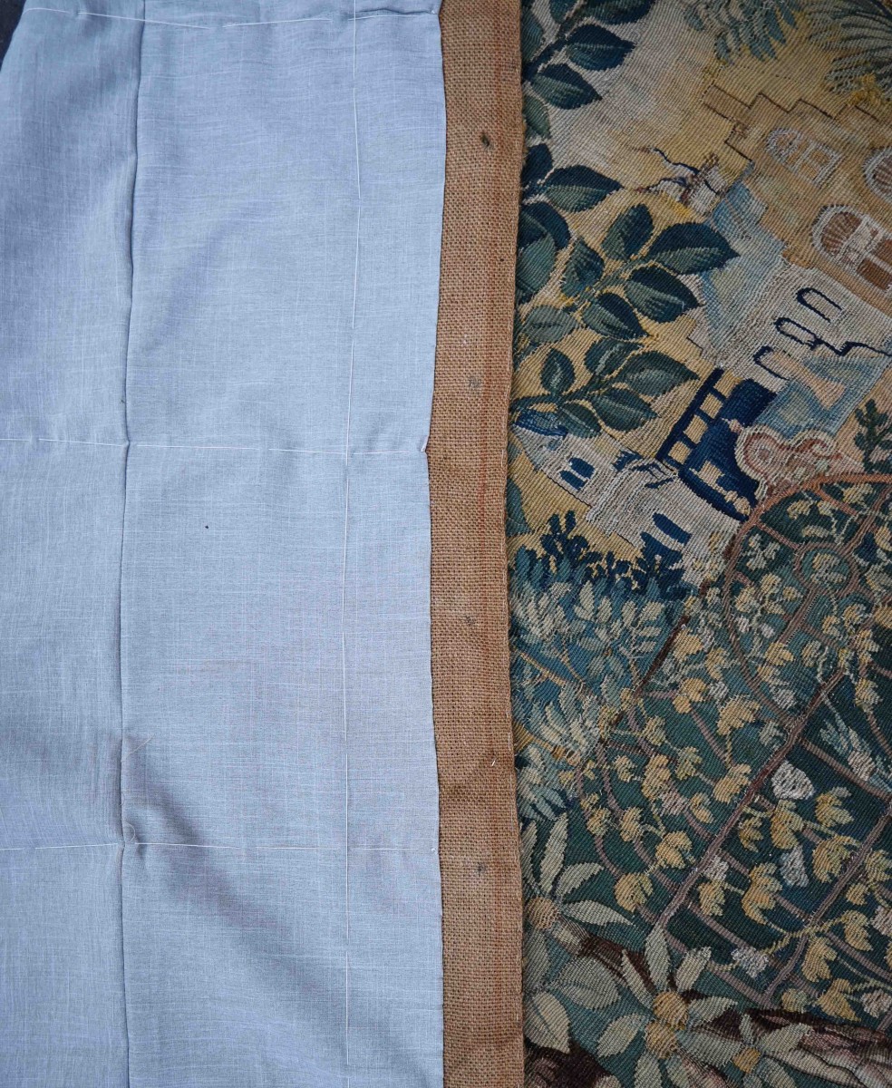 This magnificent tapestry has undergone a thorough cleaning, hand-lined with 100% linen fabric, and meticulous inspection by our experts in our artisan workshop. It is now ready to grace your home.