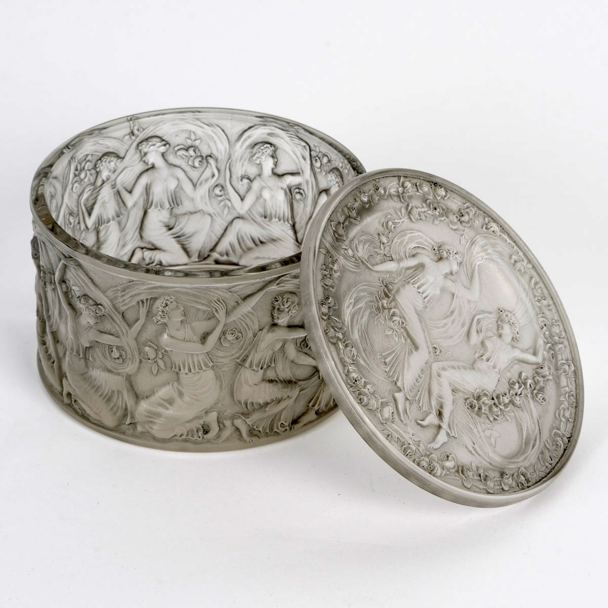 Vase "Figurines et Voiles" made in frosted glass with grey patina by René Lalique in 1929.