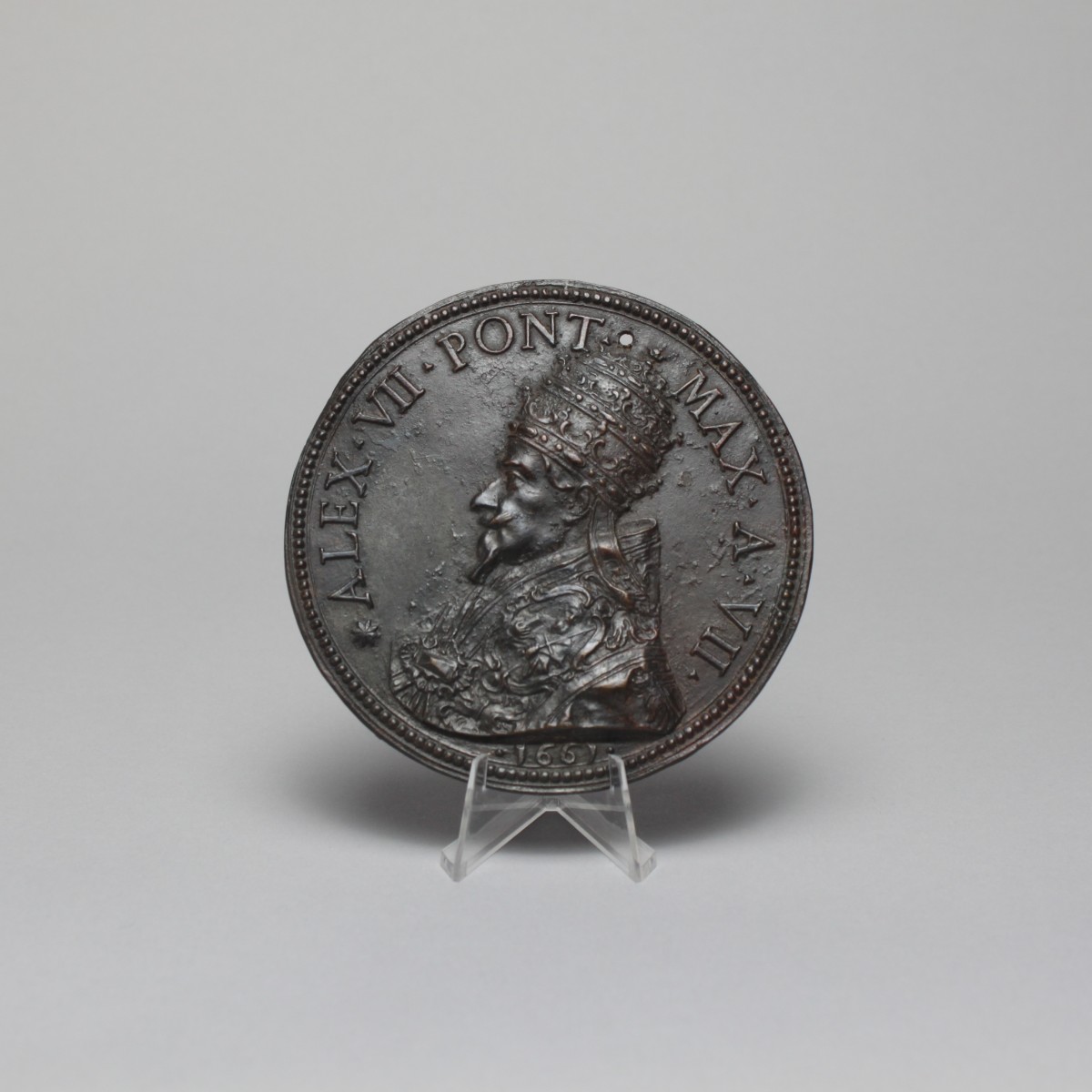 The medal was executed by Gioacchino Francesco Travani, a medallist and goldsmith who, in 1655, was one of the three Consuls of the Guild of Goldsmiths in Rome. Other related medals of Alexander struck by Travani in the early 1660s are held in the V&A Museum, London (see inv. nos A.31-1913, A.28-1977, 25-1869).