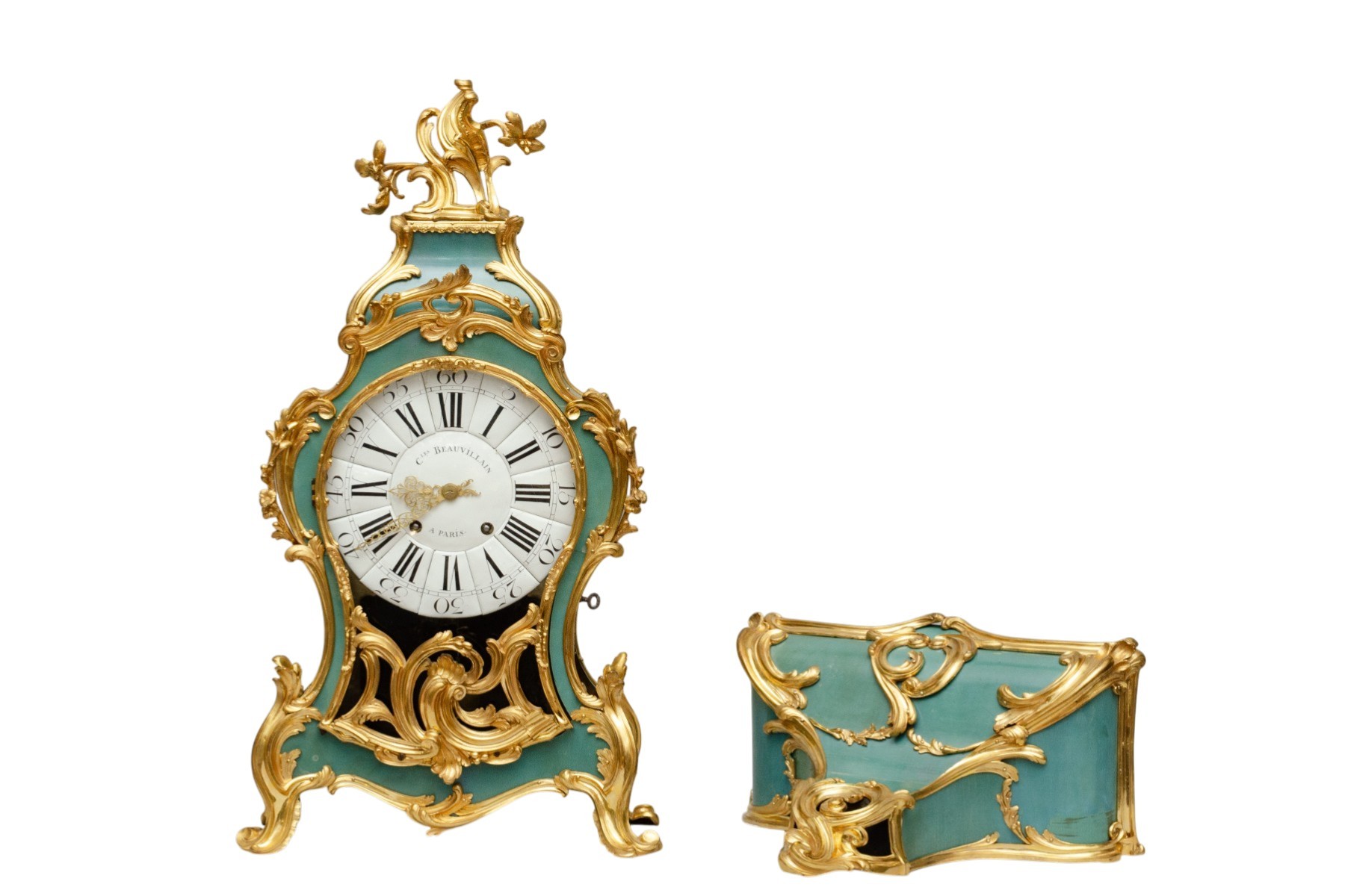 Lit: Charles Beauvillain became a master watchmaker in Paris in 1733. He was listed at Rue Dauphine in 1746, Rue des Grands Augustine in 1772, and Rue du Cimetière Saint-Andrè in 1778.