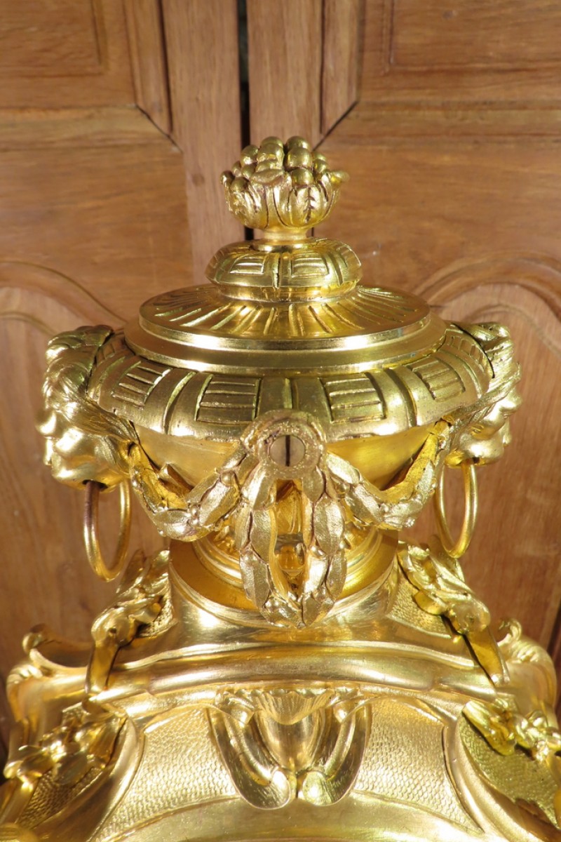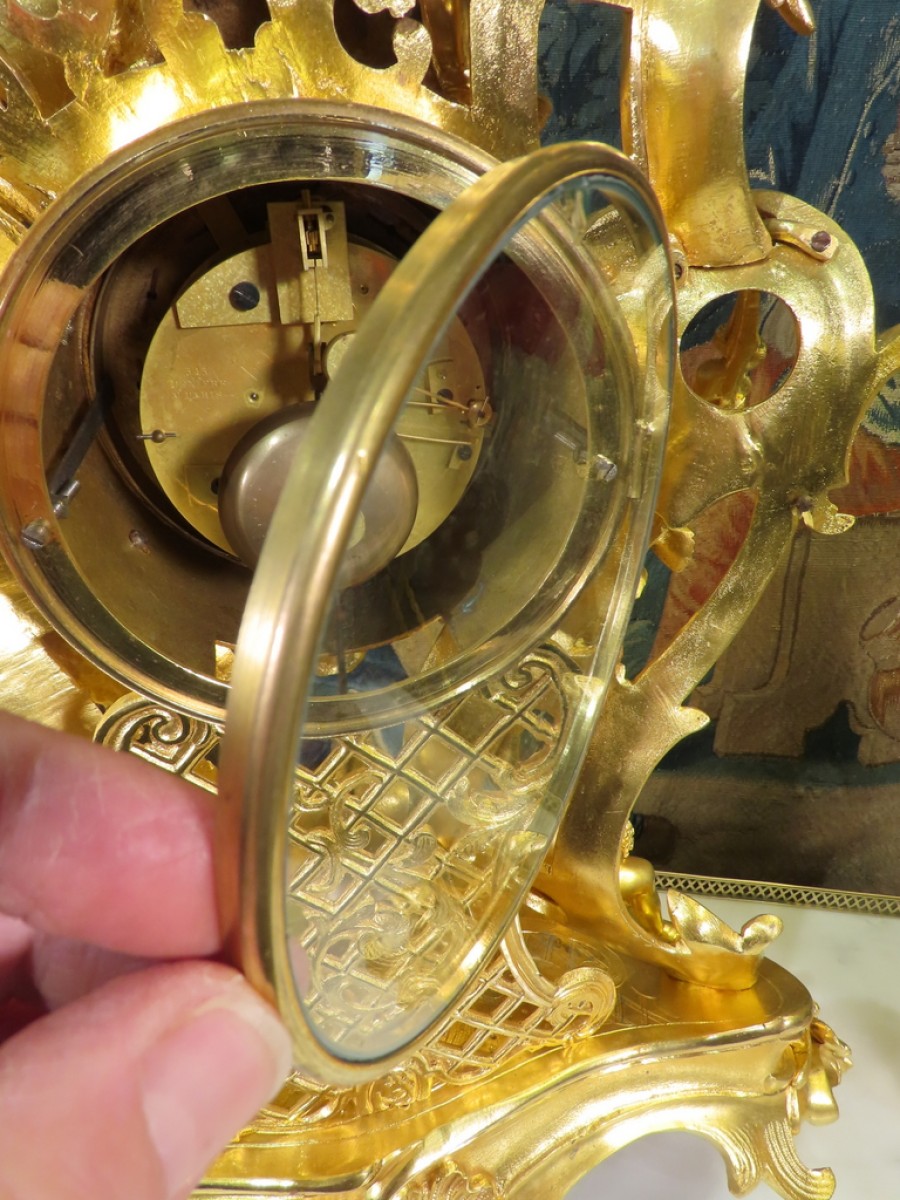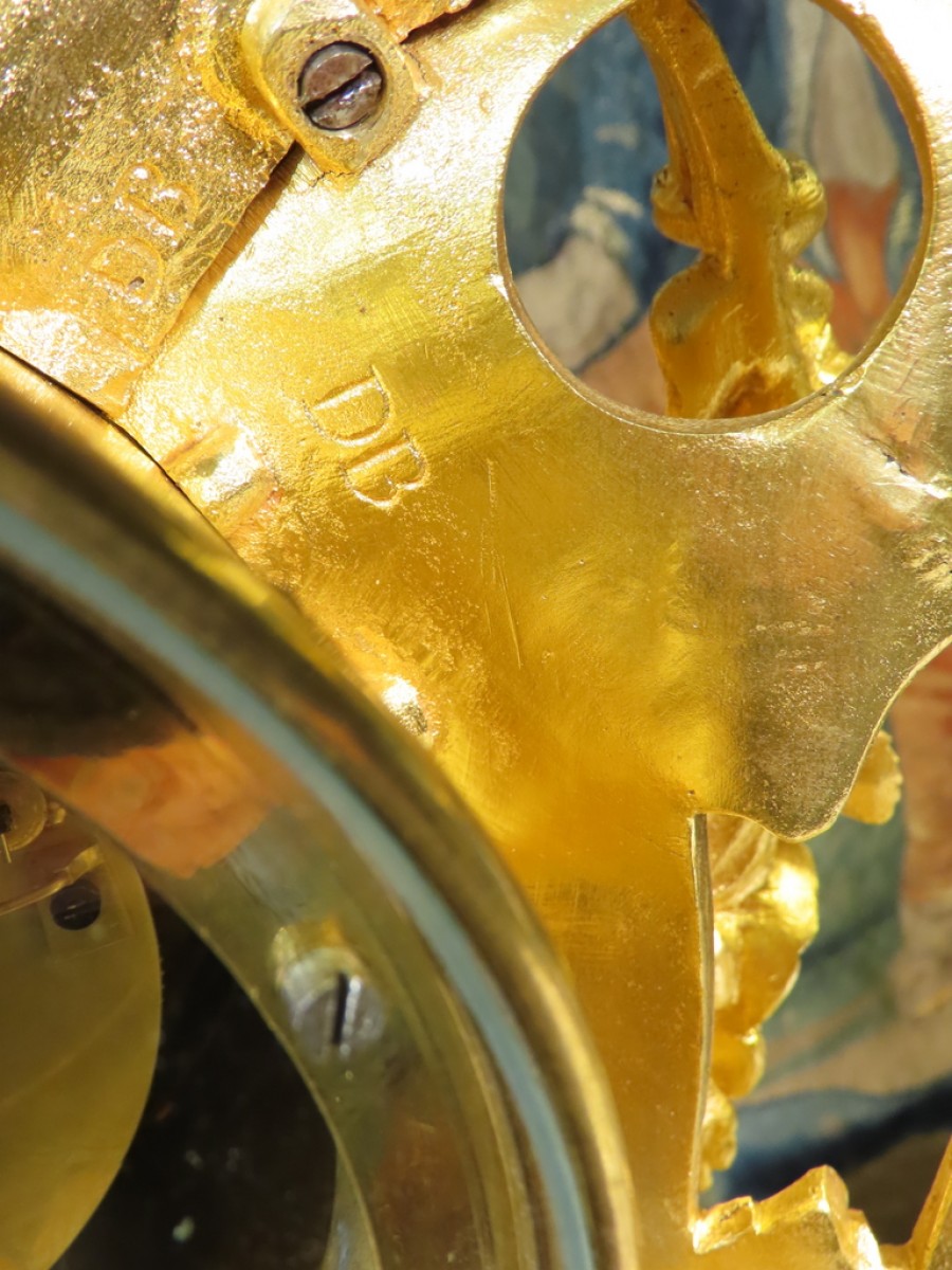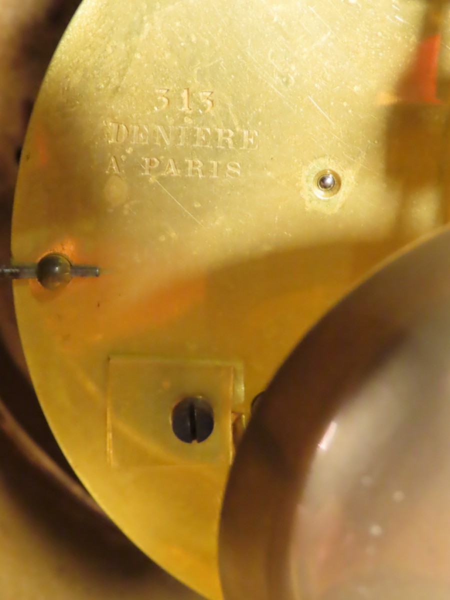 This clock has been fully cleaned and serviced, retaining its original gilding. The movement, signed by the Maison Denière in Paris, is in perfect working order and complete with its pendulum.