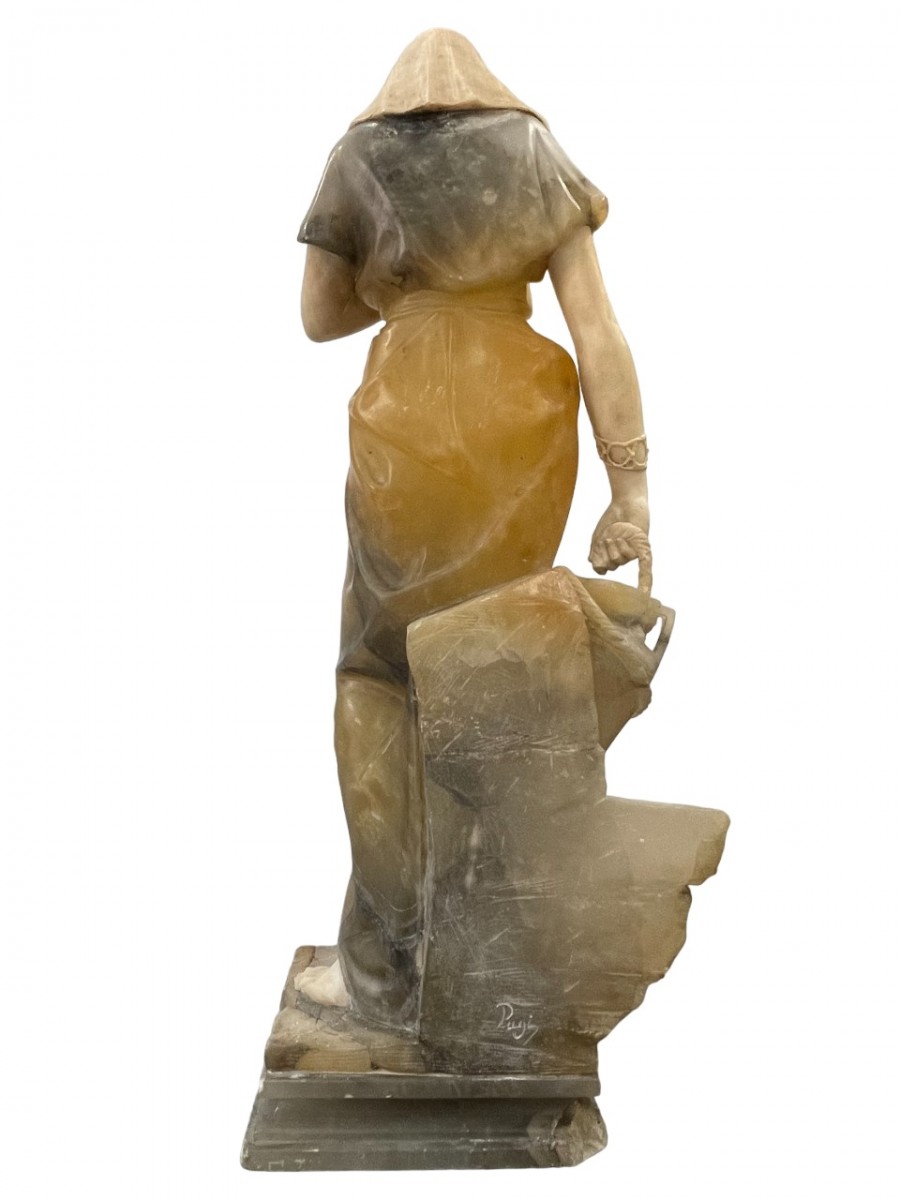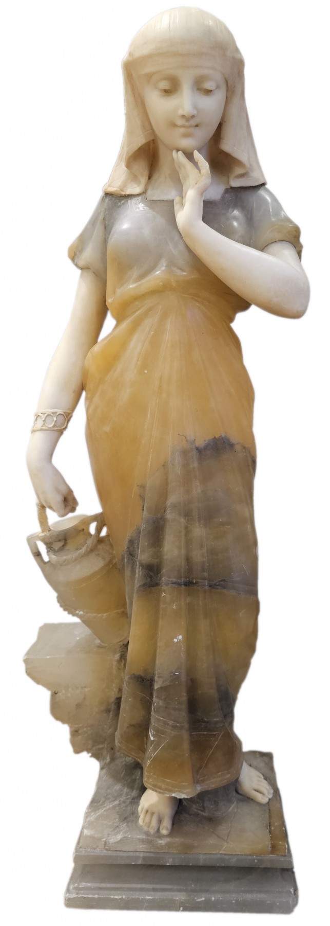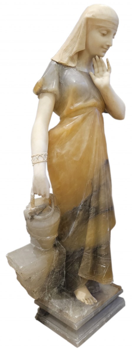 Pugi is particularly known for his works inspired by biblical themes, including Rebecca at the Well. This sculpture tells the story of Rebecca, who, while drawing water, meets Eliezer, Abraham's servant, seeking a wife for Isaac. Impressed by her goodness and beauty, Eliezer chose her for Isaac, and she became his wife.