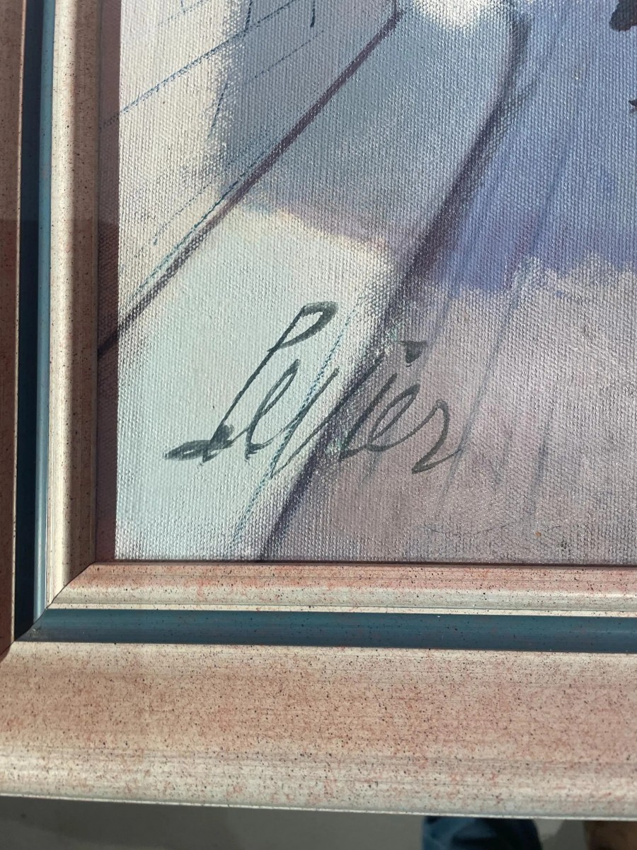The elongated, stylized figures—so characteristic of the artist—bring rhythm and modernity to this Parisian setting bathed in soft light. A subtle palette and expressive brushwork convey with sensitivity the charming, animated atmosphere of the Butte Montmartre.