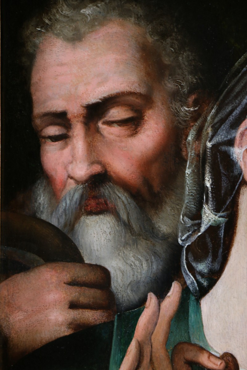 Giovanni Battista Ramenghi, known as Il Bagnacavallo (1521-1602), was an Italian Renaissance painter born in 1521 in Bagnacavallo, a small town near Ravenna in Emilia-Romagna, and died in 1601 in his hometown. He is sometimes referred to as Giovanni Battista II Ramenghi to distinguish him from his father, who was also a painter. Born into a family of artists, Giovanni Battista was the son of Bartolomeo Ramenghi, known as Il Bagnacavallo, a pupil of Raphael. He thus grew up in an artistic environment steeped in the legacy of the Roman High Renaissance. Trained in the family workshop, he quickly absorbed the principles of Raphael-inspired classicism: harmonious compositions, gentle figures, and balanced colors. Throughout his career, he developed a personal style rooted in the Emilian tradition of the 16th century. His work reflects a transition between the classical ideal inherited from the previous generation and the new Mannerist sensibilities emerging in Italy at the time. His religious compositions—altarpieces, Madonnas and Child, and scenes of saints—are distinguished by their great narrative clarity and meticulous attention to facial expressions. He worked primarily in Emilia-Romagna, particularly in Bologna, Ravenna, and the surrounding towns. His art reflects the cultural vitality of the region during a time marked by the religious upheavals of the Reformation and Counter-Reformation, periods in which sacred imagery acquired renewed importance. Giovanni Battista Ramenghi remains a representative figure of the 16th-century Bolognese school. His work illustrates the continuity of a family and regional artistic tradition, while also participating in the stylistic evolution that led from the classical Renaissance to the more expressive forms of the late 16th century.