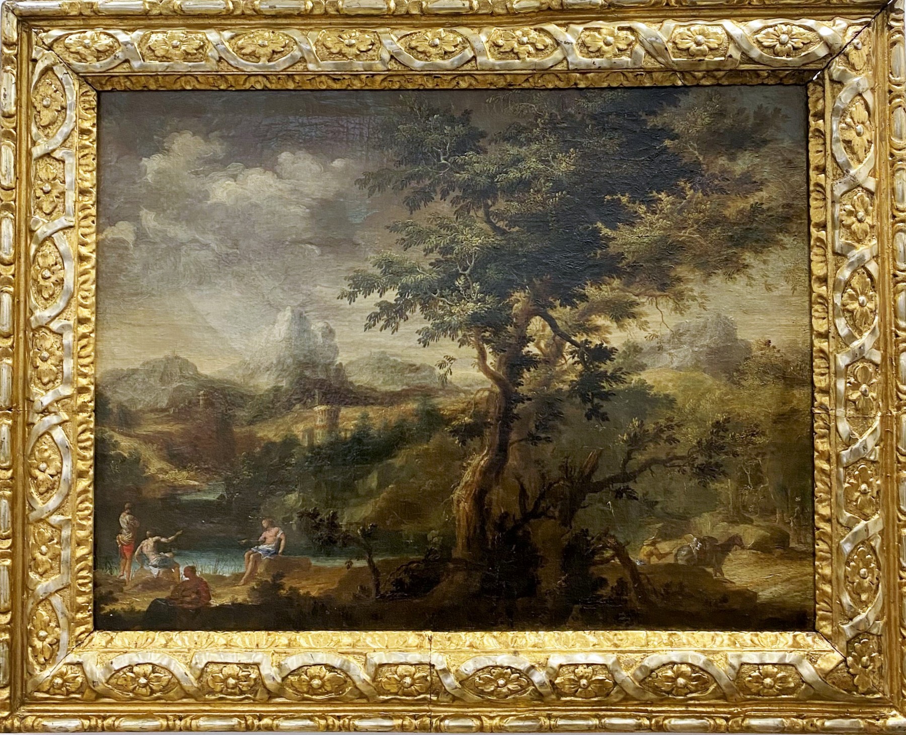 These tormented landscapes with imposing, tortuous trees, sometimes uprooted or scratched by successive storms is characteristic of these Neapolitan Baroque landscape painters of the early 18th century.