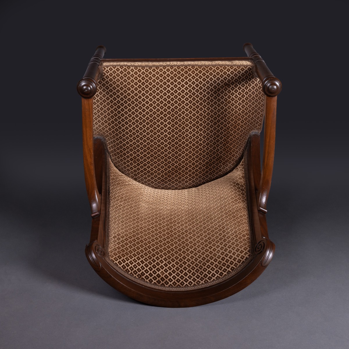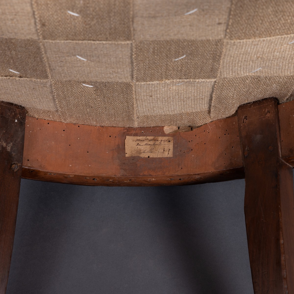 The label on the back crossbar of this chair is surprisingly well preserved. It reads “Made la marquise/de Montcalm/Sallon”. This chair belonged to a set probably commissioned by the Marquise de Montcalm. A patron of literary salons during the Restoration, she moved into a new mansion at 37 Rue de l'Université in September 1817 and held a salon there, which was frequented by the most famous names of the day, including Lamartine and Chateaubriand. Her vivacity and sharp mind, but also her proximity to power, played a large part in this. The publication of her journal, filled with insightful analysis and information coming directly from the highest circles, was a great success, leading to several reprints.