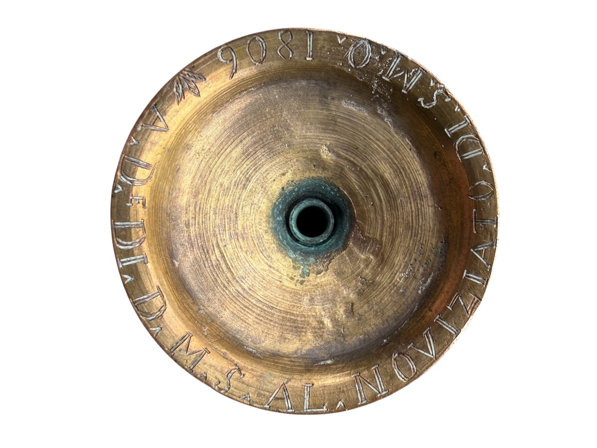 An engraved inscription dated 1806 appears beneath the foot, likely added at a later date, possibly commemorating a donation or a gift.