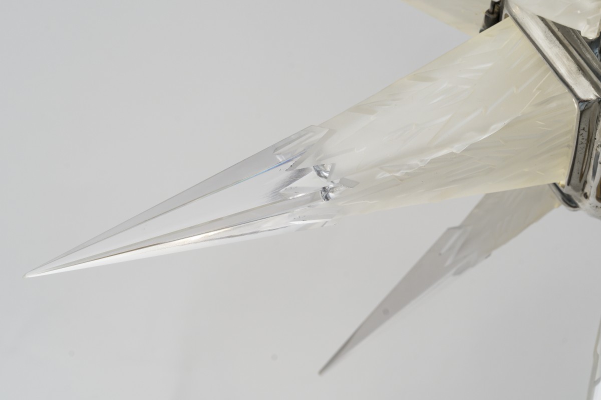 The glass elements are signed by the renowned Parisian glassmaker Degué, which collaborated with designers such as Charles J. Weinstein. Degué manufactured the glass components according to the designers’ drawings, combining technical mastery with refined aesthetics.