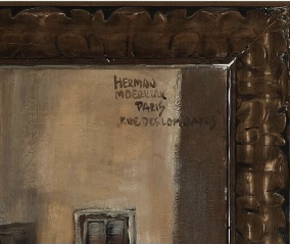 The painter Herman Moerkerck, a versatile artist and occasional satirist, signed and located his impressionist view on Rue des Lombards.