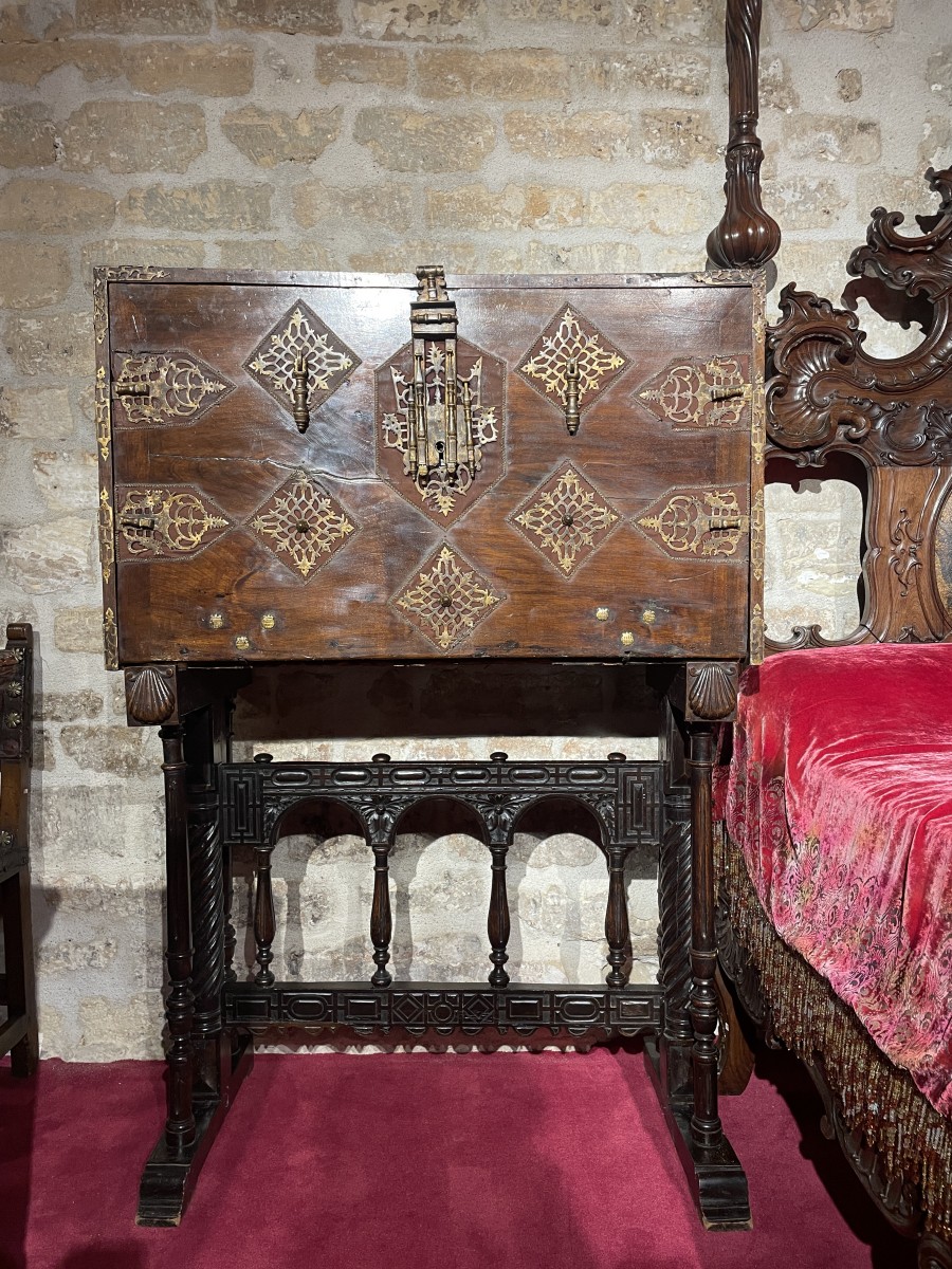 The bargueno is one of the major contribution from Spain to European furniture. Elegant cabinet adopting the structure of a chest mounted here on its original stand. Also called Vargueno from the city of Varga, near Toledo, which was the main production centre. The bargueno was the conquistadore and missionary’s favourite item of furniture to carry his administrative, diplomatic or personal belongings to the New World.