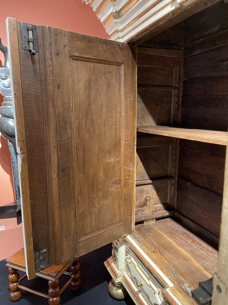 At the beginning of the 17th century, it was oak that was favored by cabinet makers, walnut soon replaced it, alternating with ebony. Here you can admire inside, the finesse of the fonçures worked on oak wood originating from Hungary.
