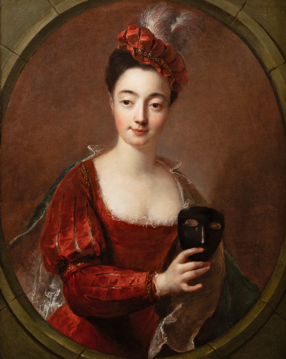 The young woman's clothes allude to what was then called the "costume d’espagnolette" a fashion that spread after Philip of Anjou, grandson of Louis XIV, ascended to the throne of Spain in 1700. Many portrait painters of the Regency popularized this disguise outfit for masked balls among their models, abandoning the mythological disguises in vogue in the previous century.