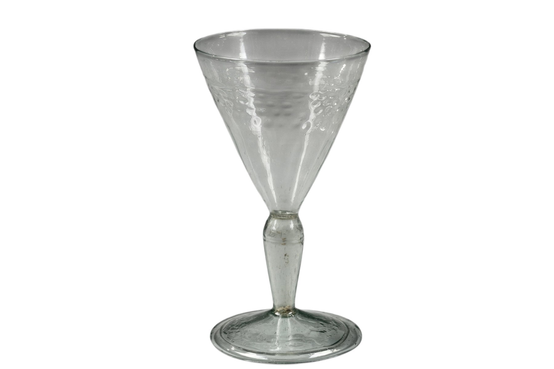 Elegant fern?glass drinking vessel in blown glass, of tulip form. The cup flares at the upper section, the stem is hollow, and the foot is flat. Early 18th century.
