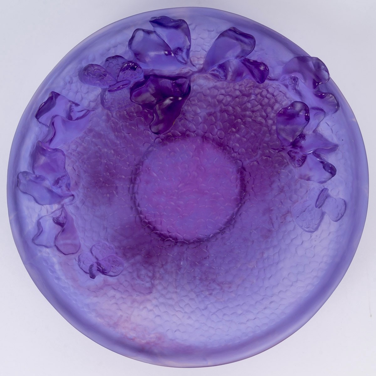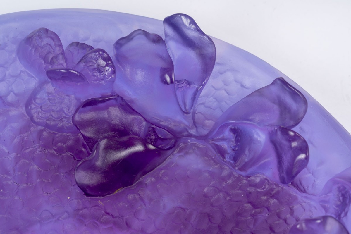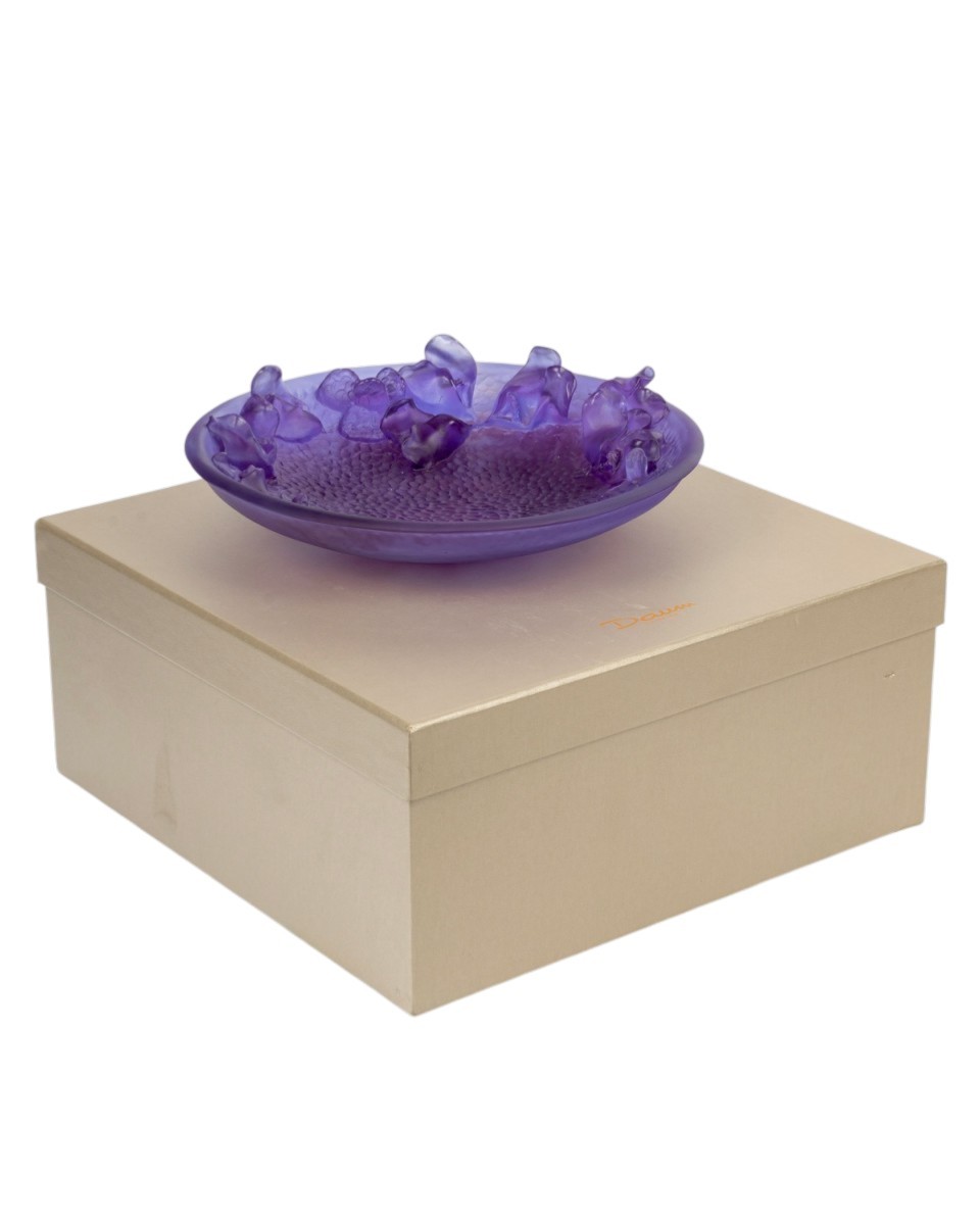 Bowl "Jardin Imaginaire" (Imaginary Garden) made in gradient purple crystal. Engraved and numbered signature. Perfect condition. Brand new in its original box. New Diameter: 30cm