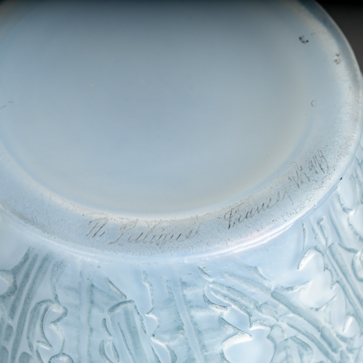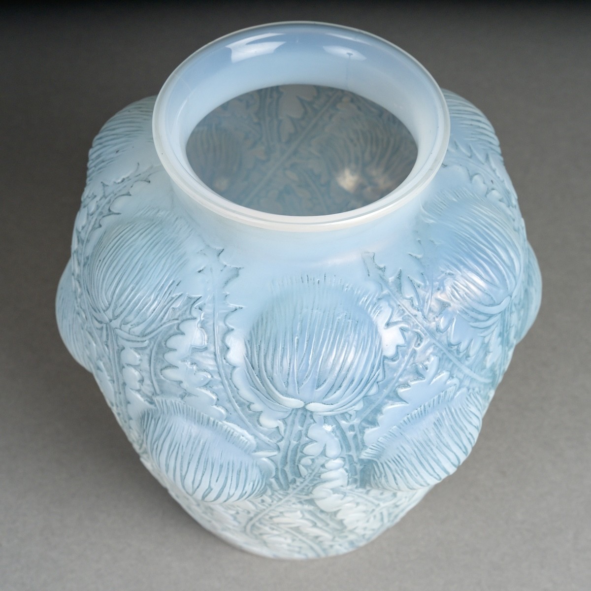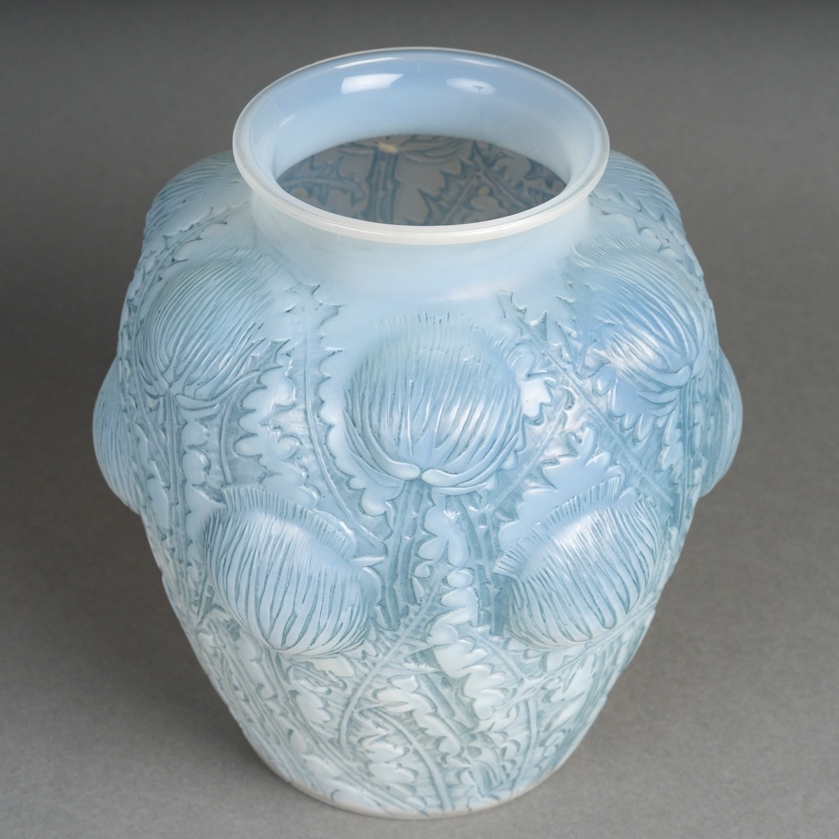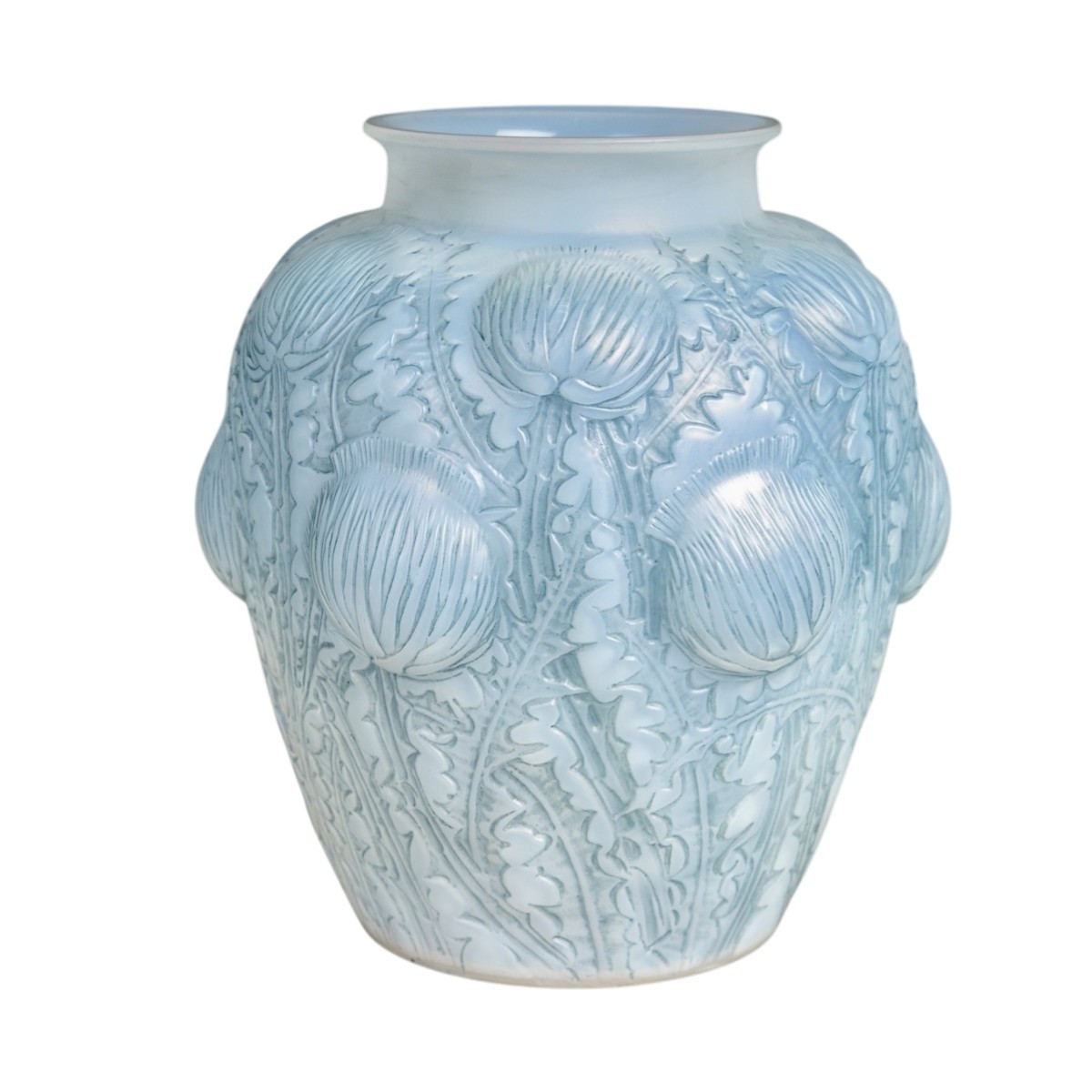 Vase "Domremy" (Thistles) made in cased opalescent glass with blue patina by René Lalique in 1926.