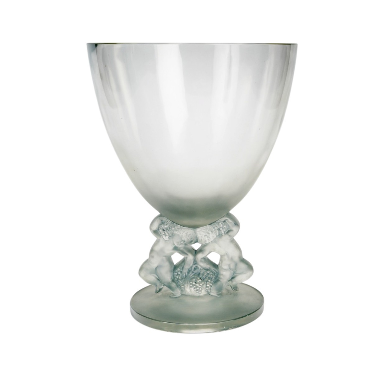 Vase "Enfants" made in glass with blue patina by René Lalique in 1931.