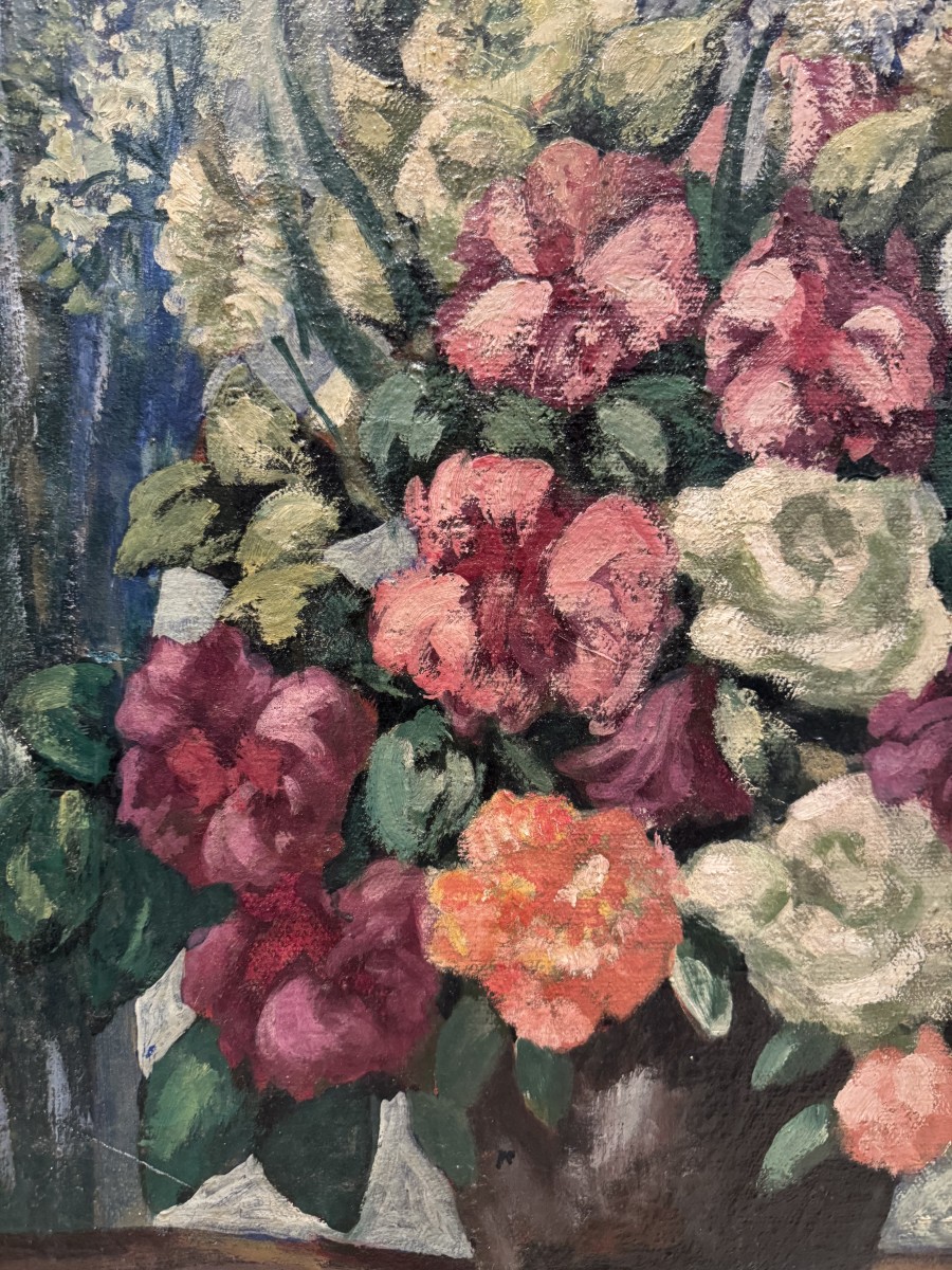 Oil on canvas depicting a bouquet of flowers in a vase on an entablature. Signed lower right E.GAUDISSARD. Painter, sculptor, decorator and upholsterer, born in Algiers in 1872. French School. Member of the French Artists Association since 1906, he appeared at the Salon and received an honorable mention in 1896; the same award in 1900 at the Universal Exhibition. He is classified as an orientalist, and had Gabriel-Jules Thomas as his master at the Beaux-Arts in Paris. Museums: Algiers, Constantine, Oran, Bou Ismail, Angers, Beauvais, Paris, Perpignan, Strasbourg, Puteaux. He collaborated in particular with the Beauvais factory for the creation of the furniture for the Council Room of the Elysée (1927-1933), and for a low warp tapestry "fish" covering a screen, in 1935 (cf. "Elegance and modernity, 1908-1958, A French revival", exhibition at the Gobelins gallery in 2009.)