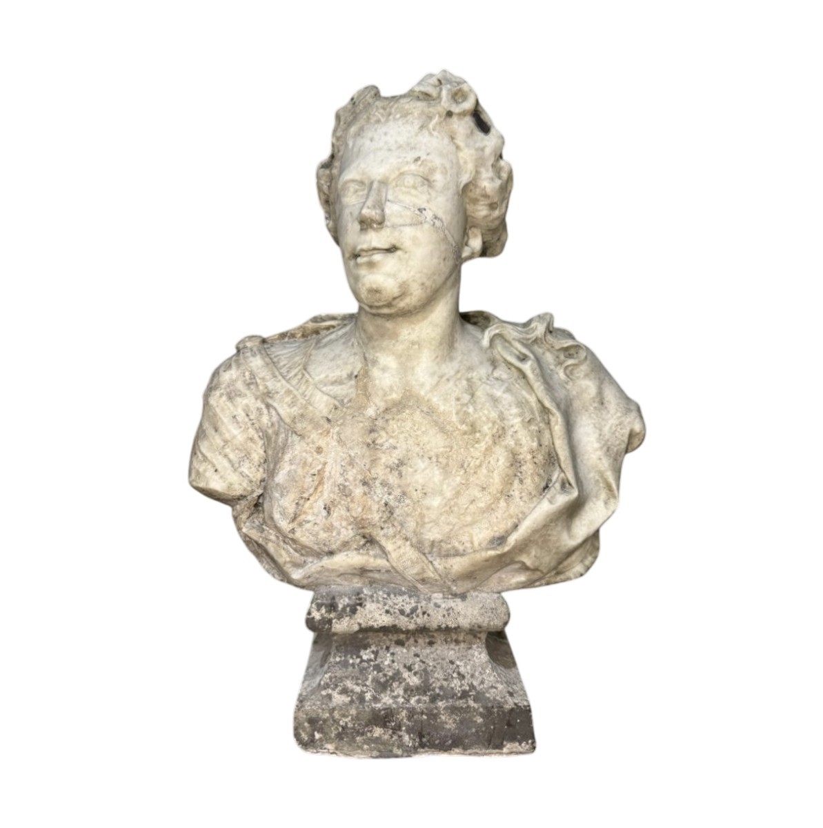 Impressive Carrara marble bust of Flora, attributed to the Venetian sculptor Orazio Marinali (1643-1720). Traces of a monogram behind the left shoulder: O....