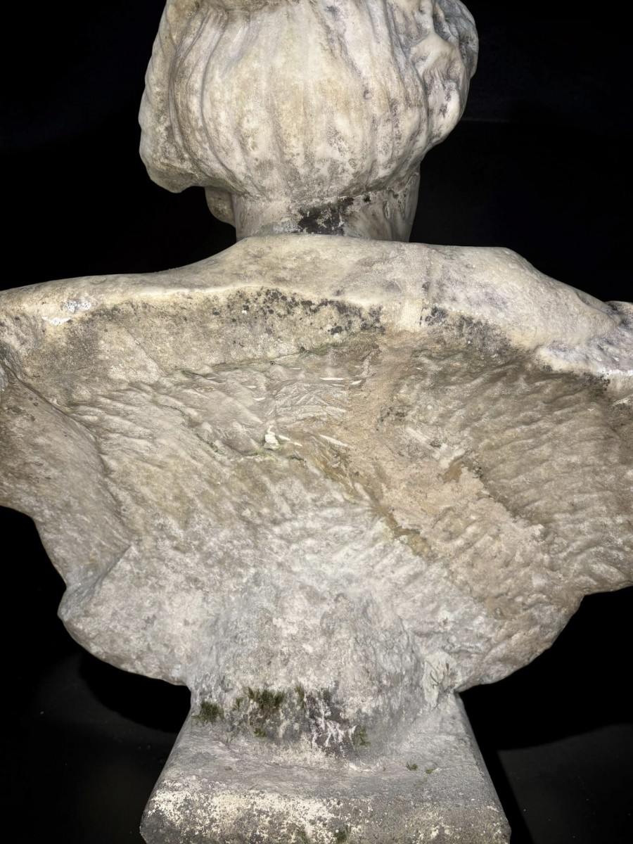Our bust comes from a private collection. The modeling of this Flora, like the workmanship of the hair, the particular rendering of the ears, mouth, and chin, and the type of drapery, lead us to Marinali's workshop. The remains of the monogram O.M., as Orazio Marinali signed himself, further confirm this.