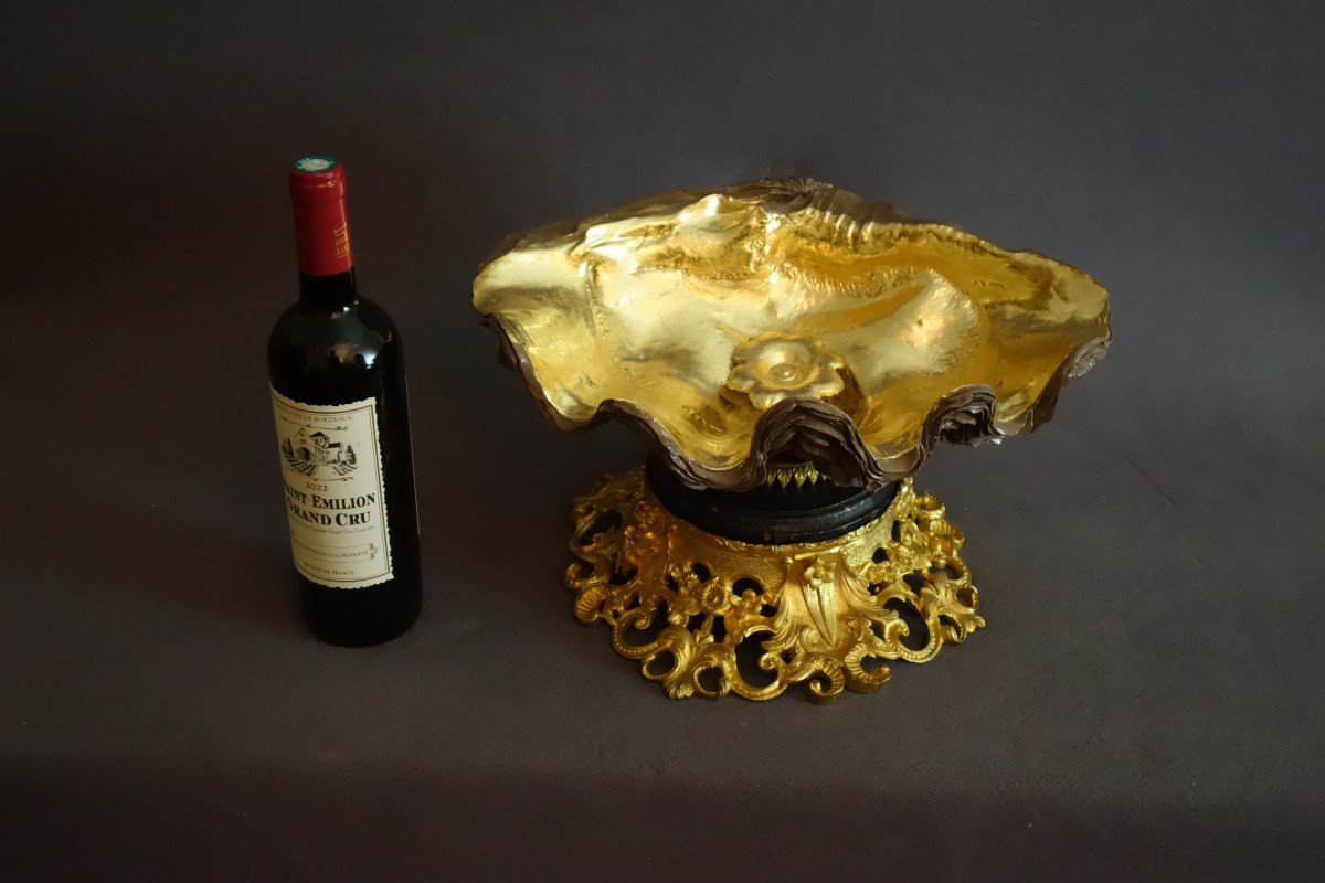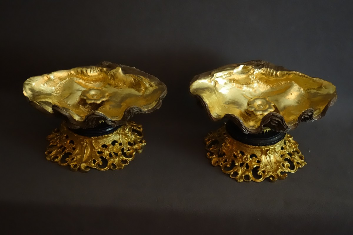 These mounted objects consist of a holy water font valve fixed to a bronze base openwork with flowers and faun masks.