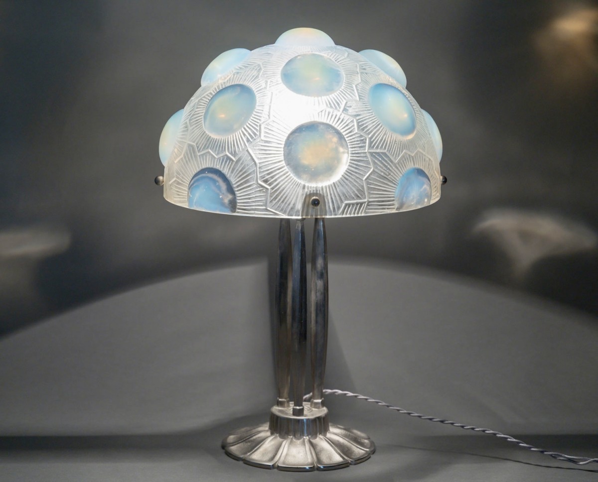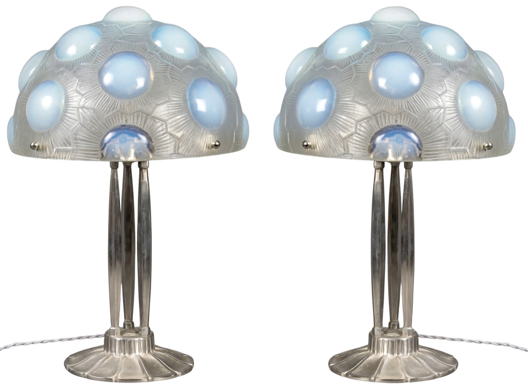 Art Deco pair of Lamps "Soleil" made in opalescent glass by René Lalique in 1926.