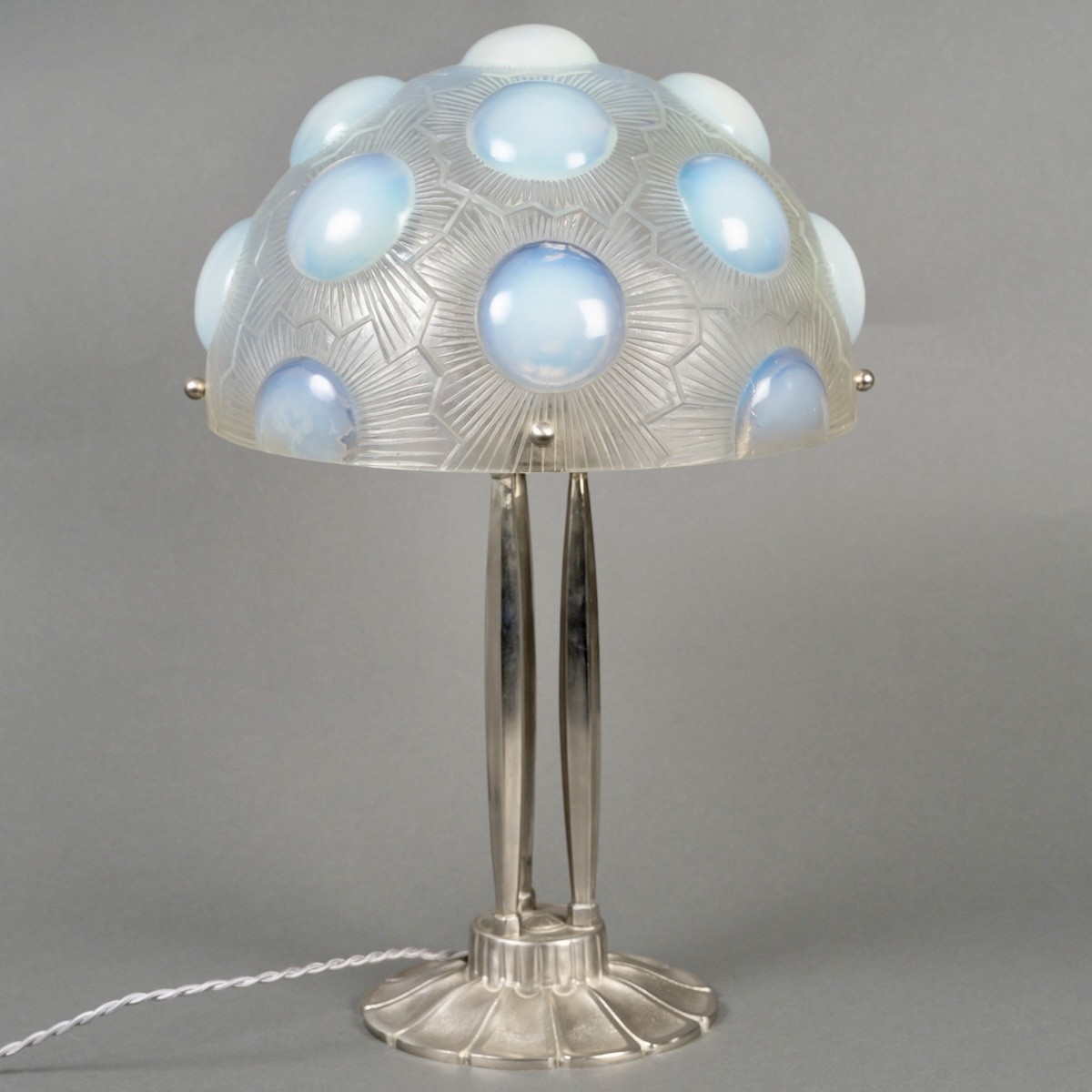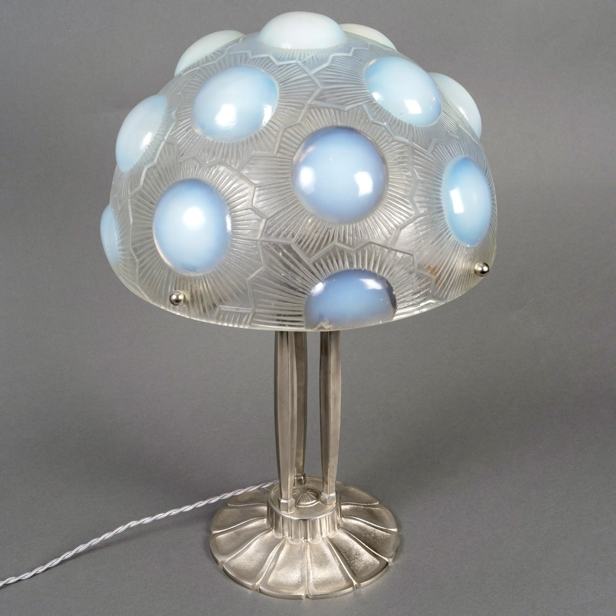 Set mounted on an Art-Deco style foot in nickel-plated bronze.