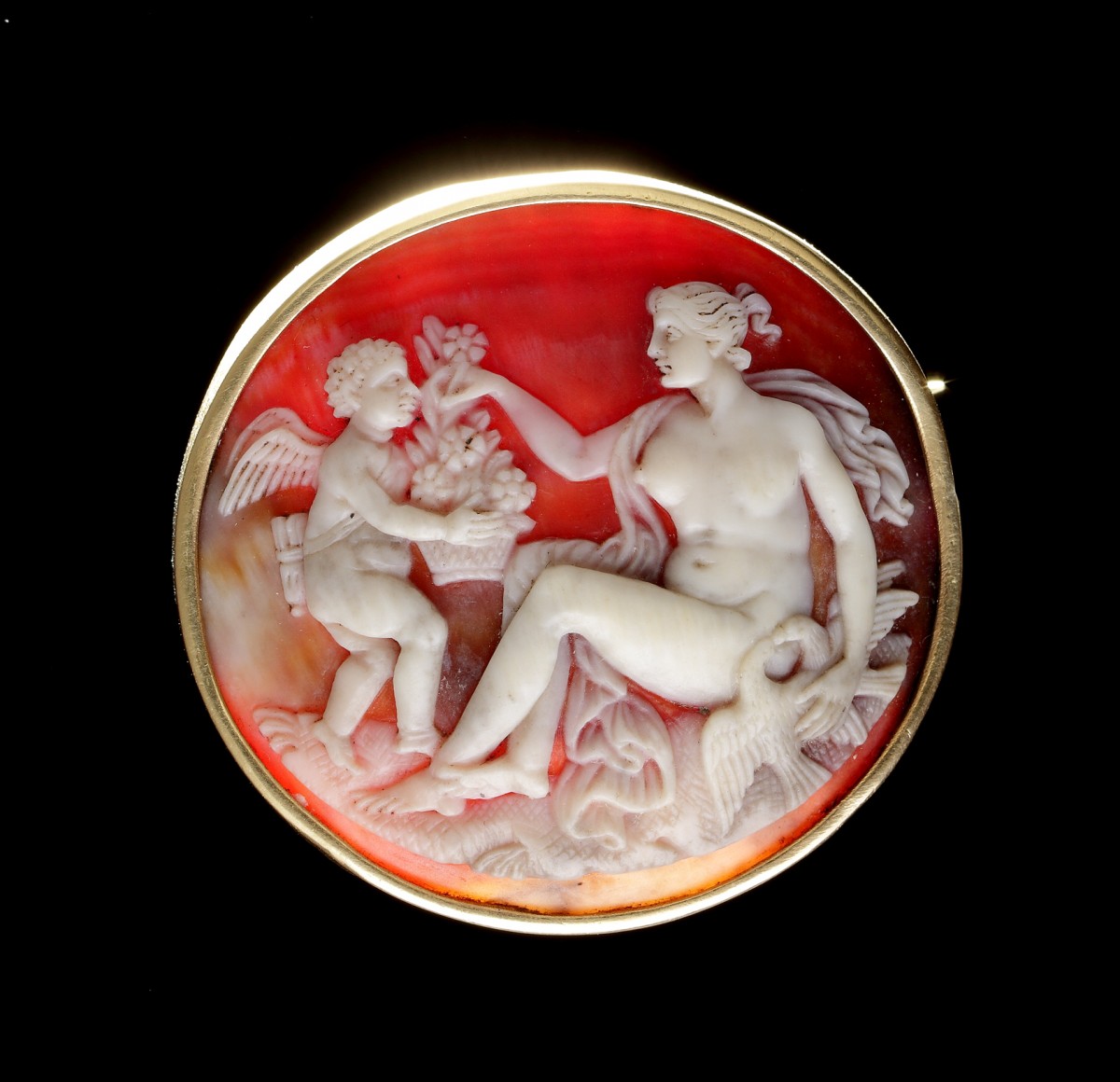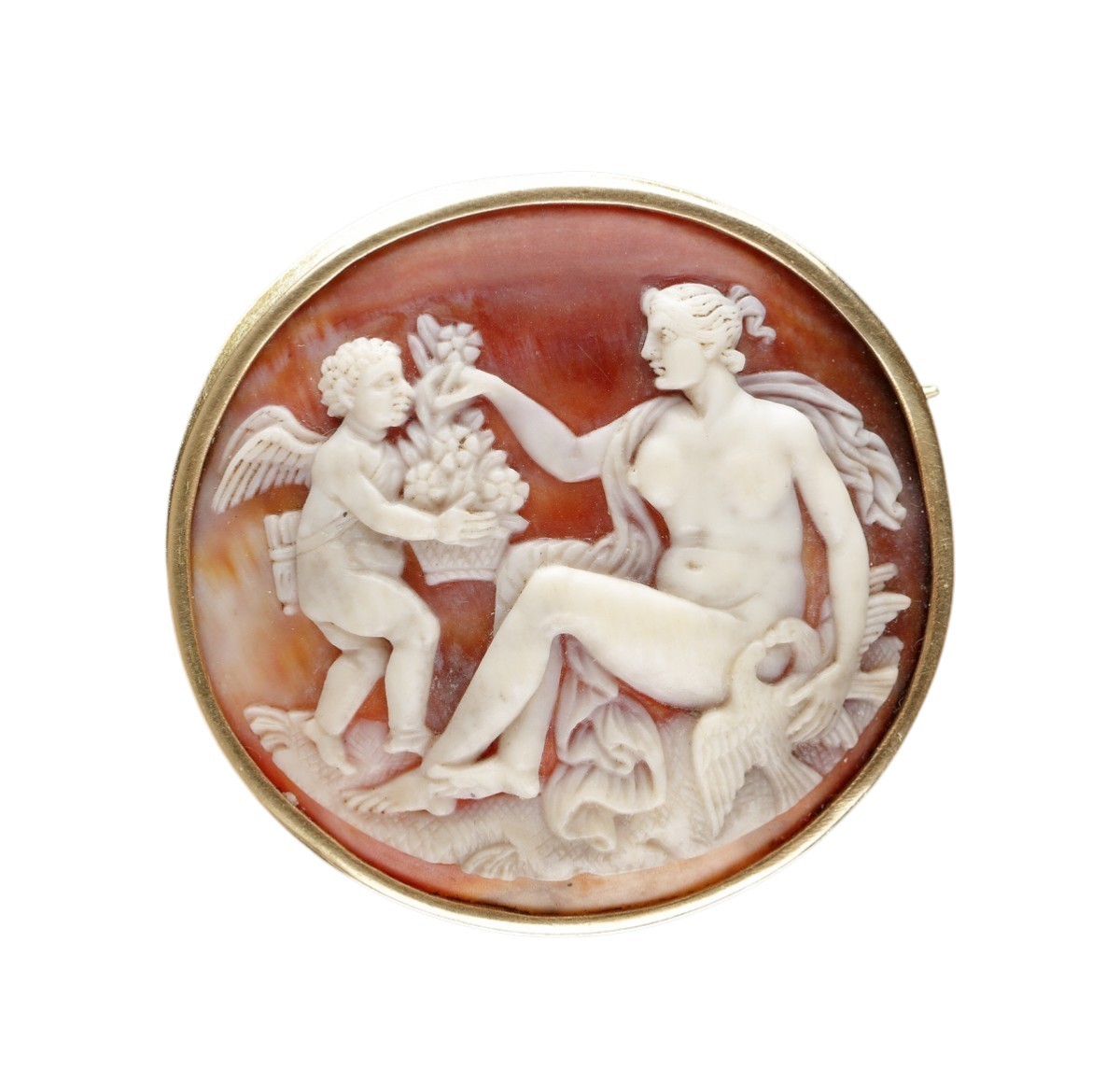 A Cameo Brooch Depicting Venus and Cupid