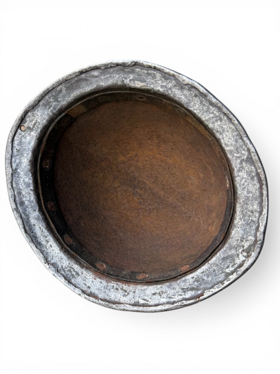 The helmet retains its original leather lining inside, rarely preserved.