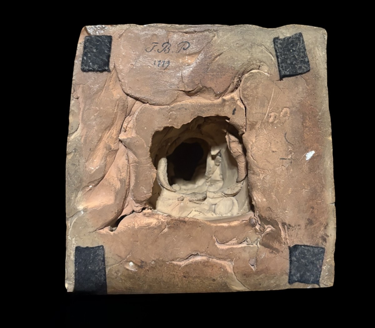 The model is in very good condition. Below, a monogram with the date "JBP 1789" can be read, which could mistakenly suggest the French sculptor Jean-Baptiste Pigalle, whose neoclassical style also has nothing to do with Giuliani's Baroque style. It could instead be the inventory of a collection or the name of the collector himself. Bibliography: Luigi A. Ronzoni, Giovanni Giuliani (1664-1744), Munich, Prestel, 2005.