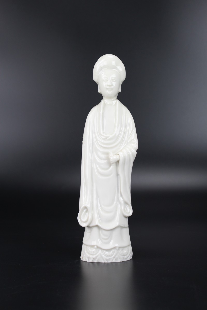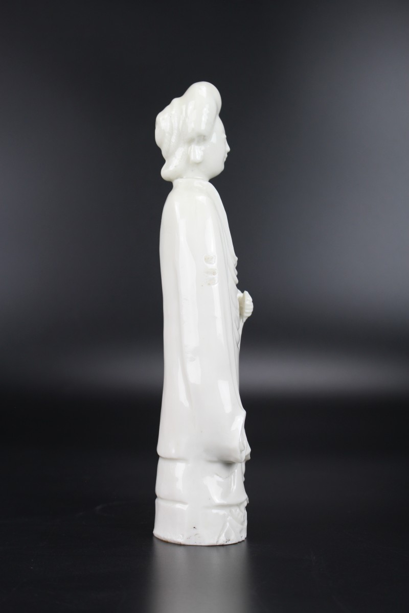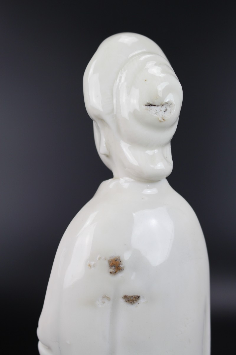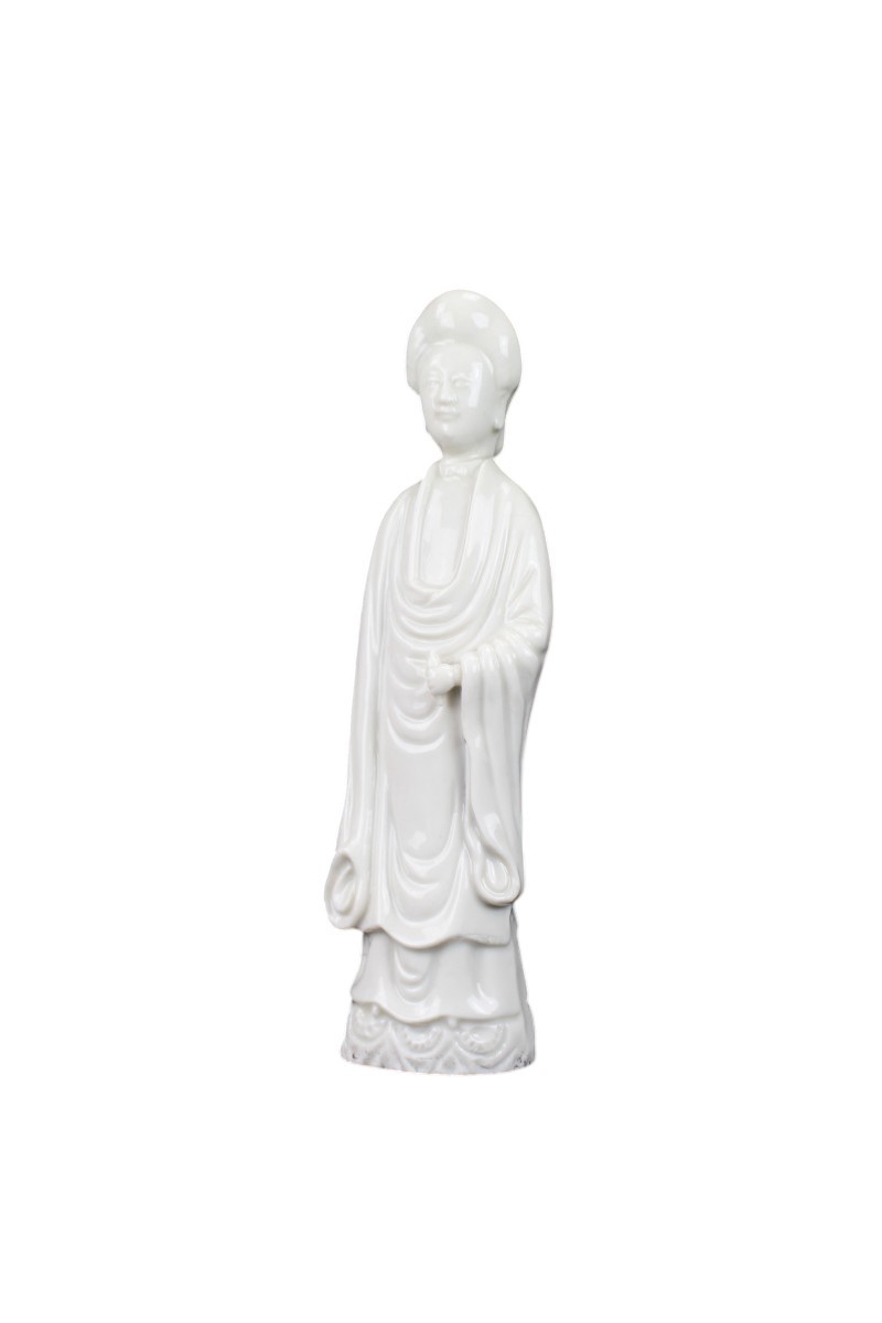 A Dehua Blanc de Chine standing figure of a lady with “de la Fontanges” European hairstyle.