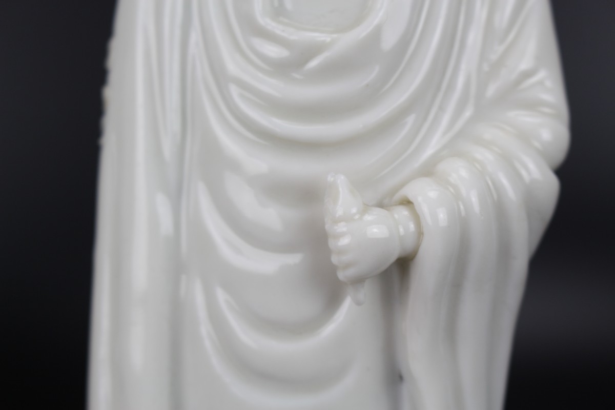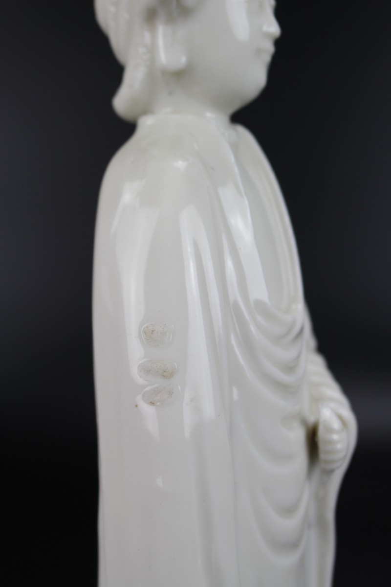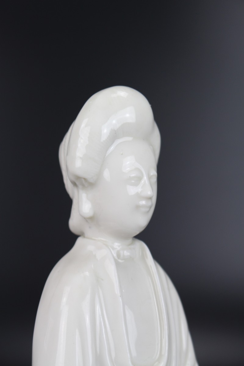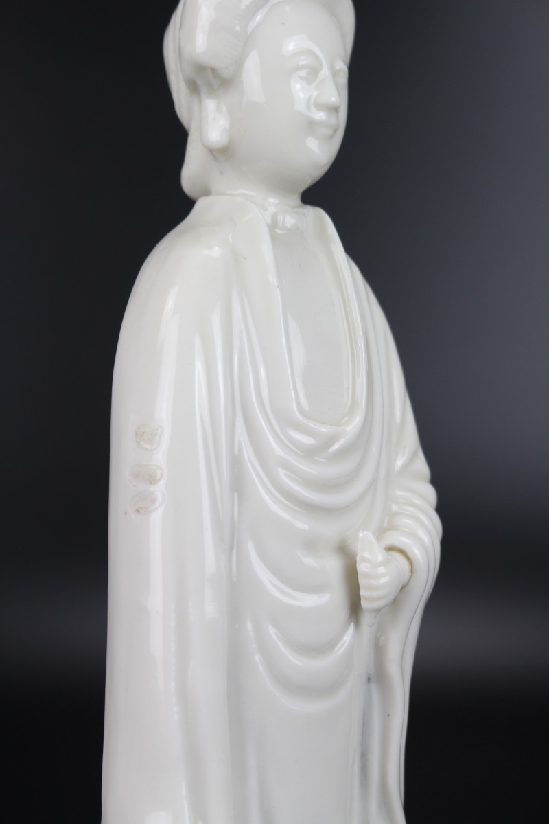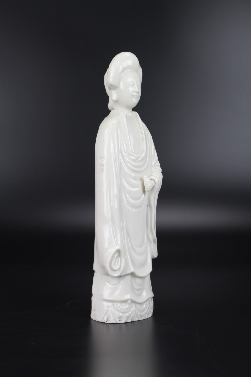 A Dehua Blanc de Chine standing figure of a lady with “de la Fontanges” European hairstyle.