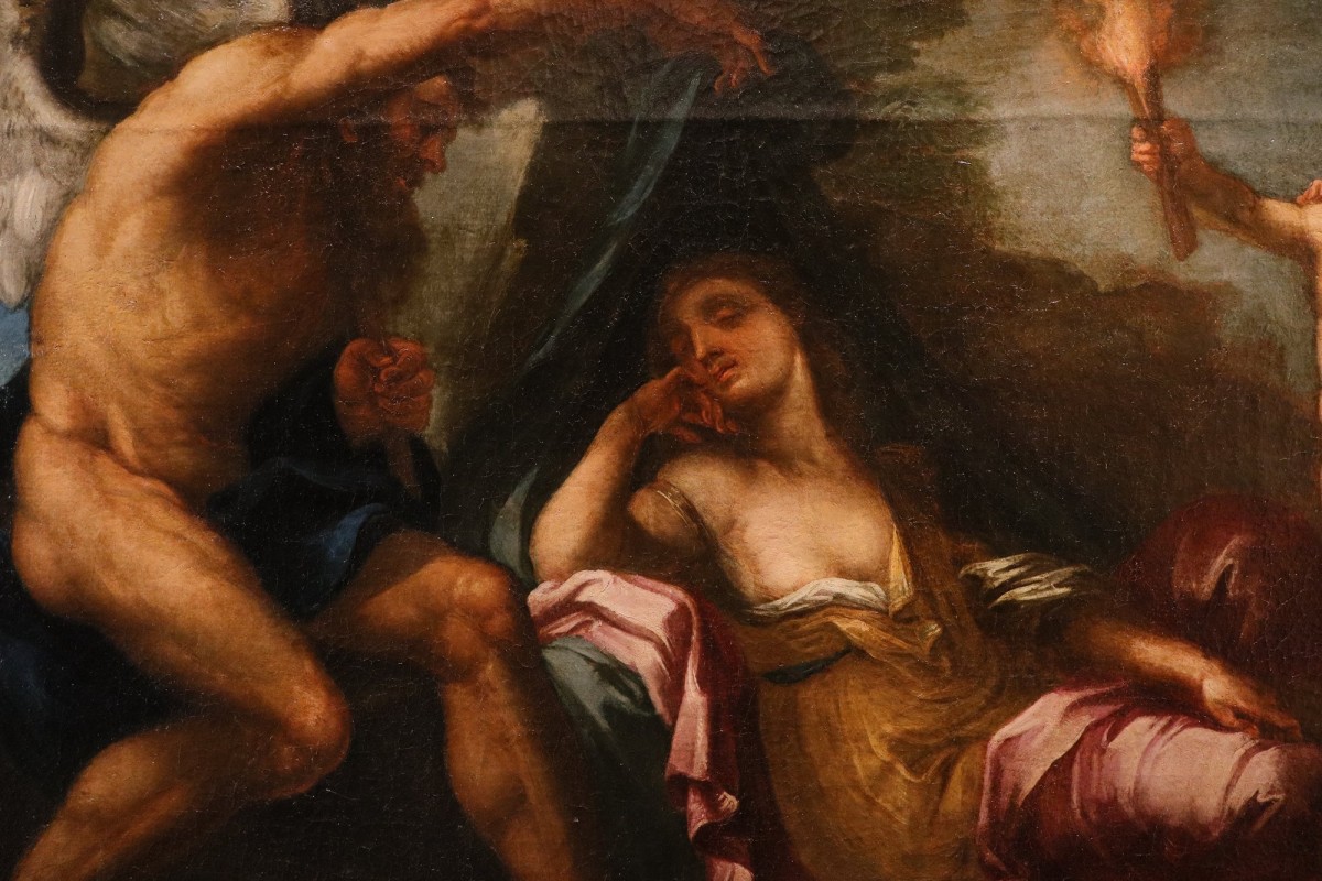 Nevertheless, there is no doubt that the painter developed his own personality without ever succumbing to imitation, achieving a refined elegance and autonomy of style, as clearly demonstrated by the canvas under consideration here, in which many and varied influences find a refined amalgam in perfect harmony with the Baroque evolution between the 17th and 18th centuries, suggesting a date in his late maturity.