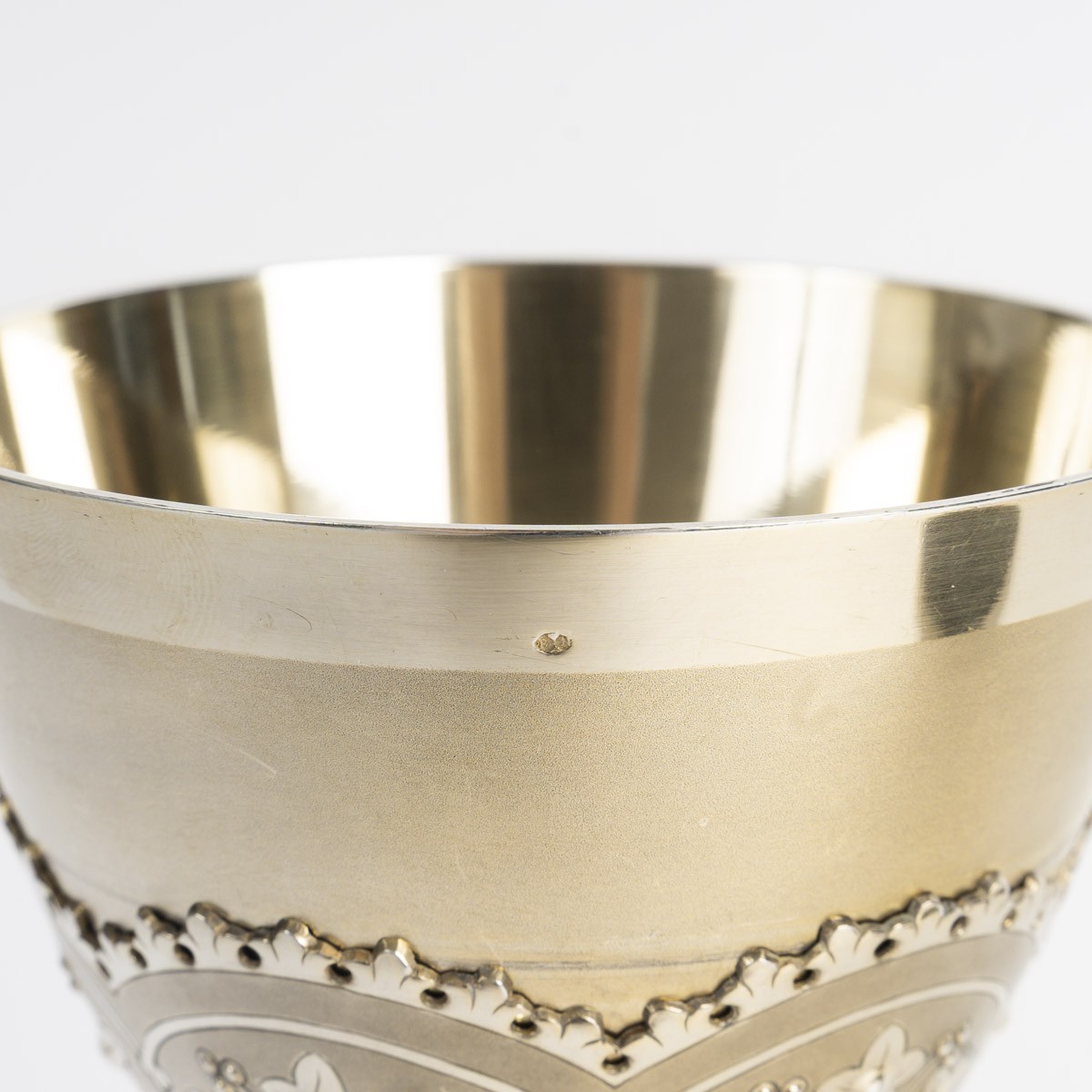 Chalice and paten in vermeil (silver hallmark), 19th century.