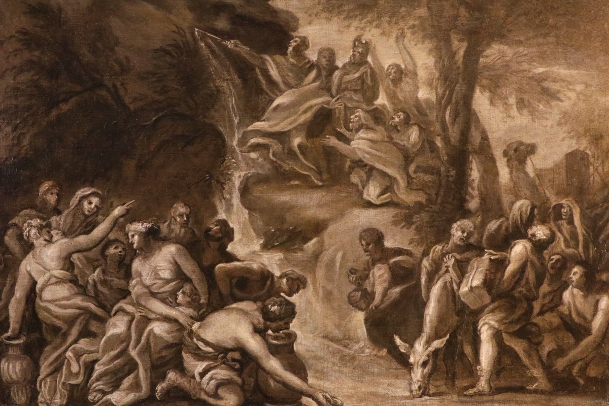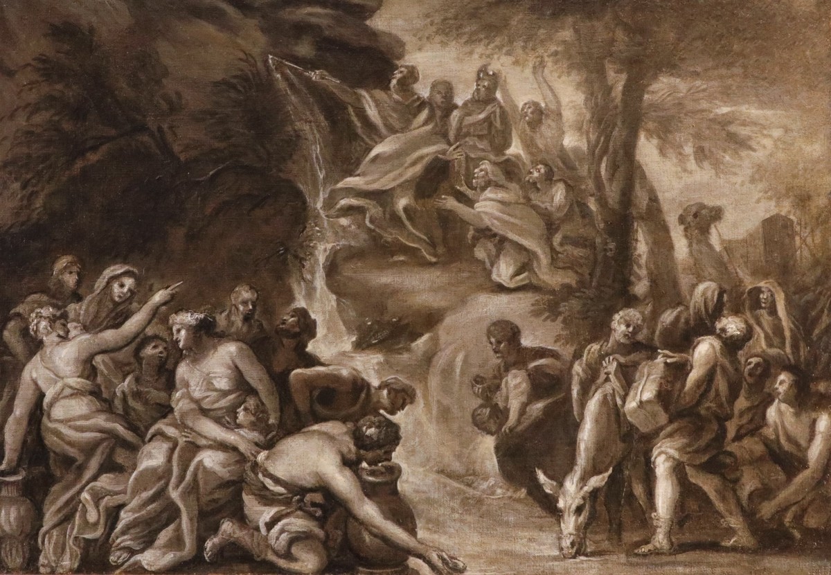 17th-century Roman school Moses bringing water from the rock (Probably a preparatory sketch)