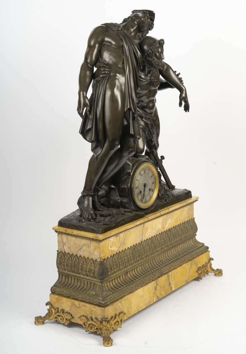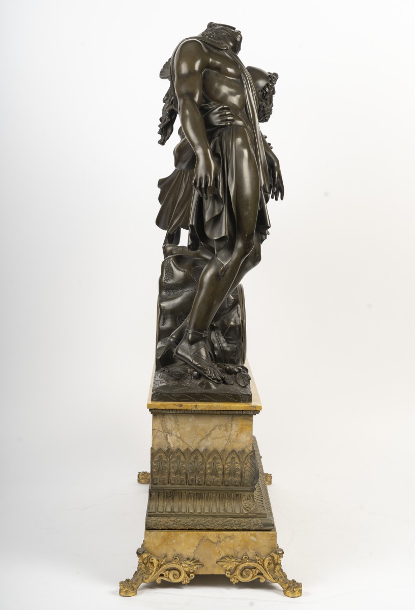 This clock reflects the influence of great Neoclassical sculptors such as Jean-Baptiste Vietty, François Rude, and David d’Angers, and demonstrates the refined taste of the first half of the 19th century for antique subjects treated with skill and sensitivity.