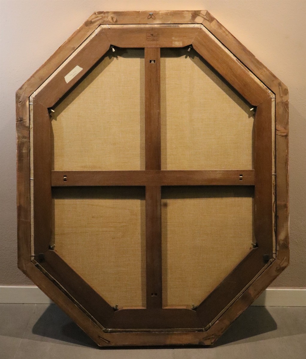oil on octagonal canvas 118 x 94 cm. Framed: 128 x 105 cm.