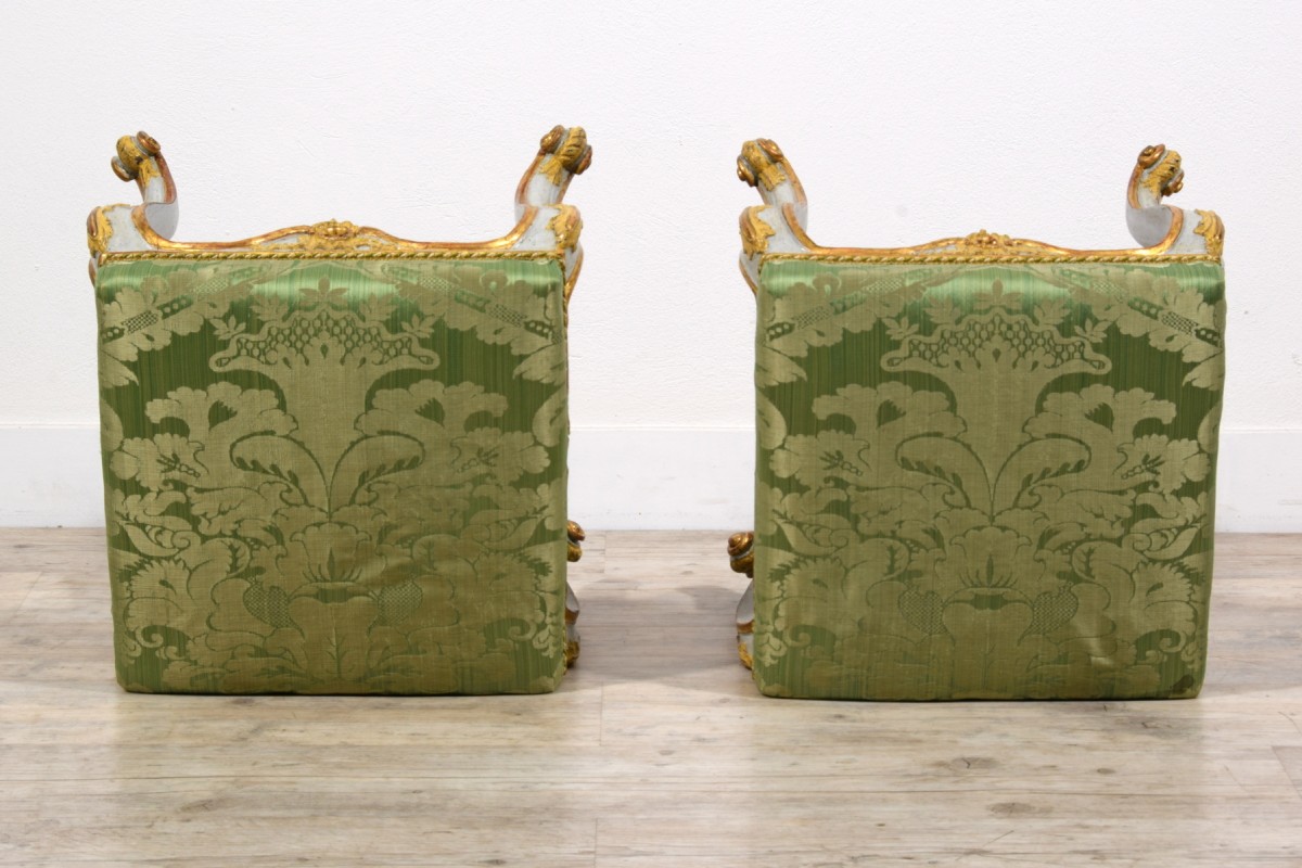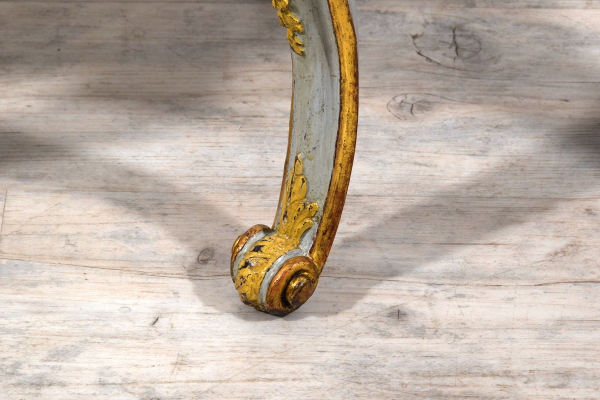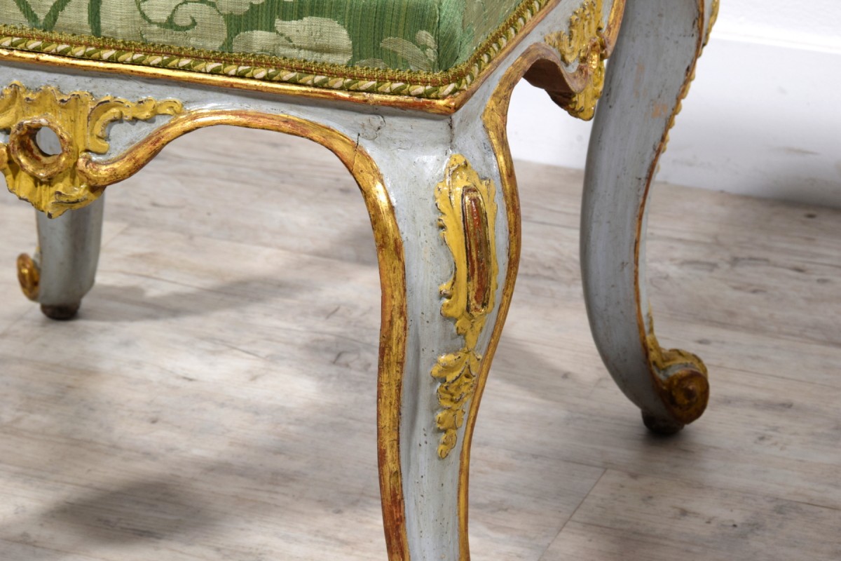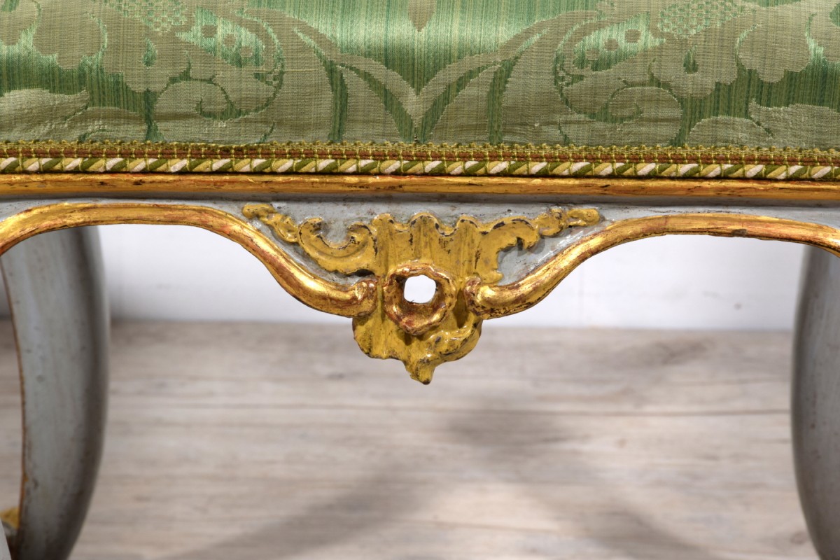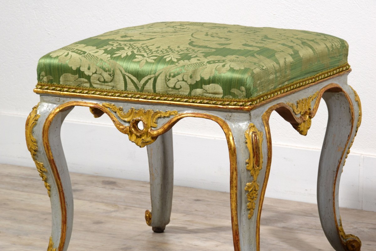 Pair of carved, lacquered, and gilded wooden stools, Barocchetto period, Turin, mid-18th century