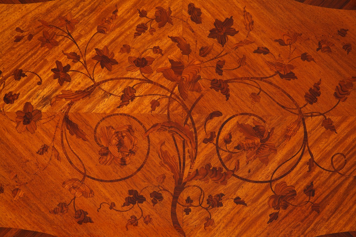 The work on this table is characteristic of Zwiener’s workshops for its quality and finesse and of L. Messagé for the design.