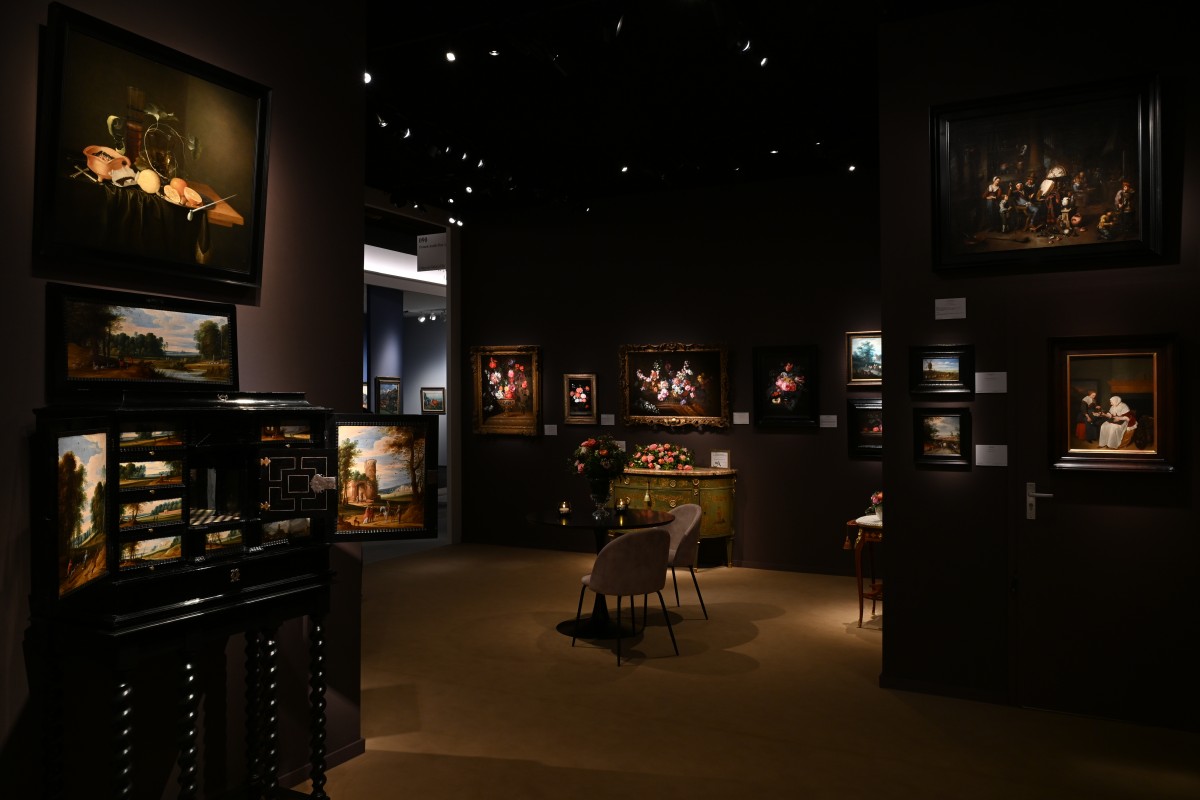 Charming Antwerp cabinet with paintings attributed to Isaac van Oosten.