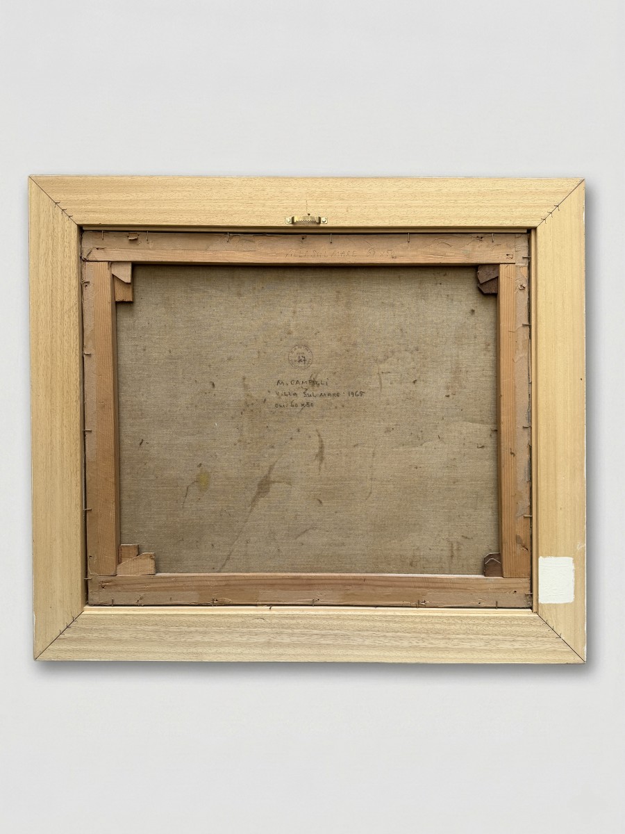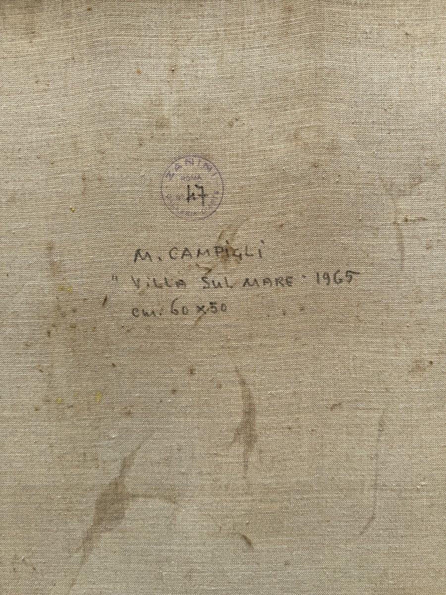 "Villa sul mare" 1965, oil on canvas, 50 x 60 cm, framed 64.5 x 74.5 cm, signed, dated, and titled on the back, provenance: Galleria Zanini