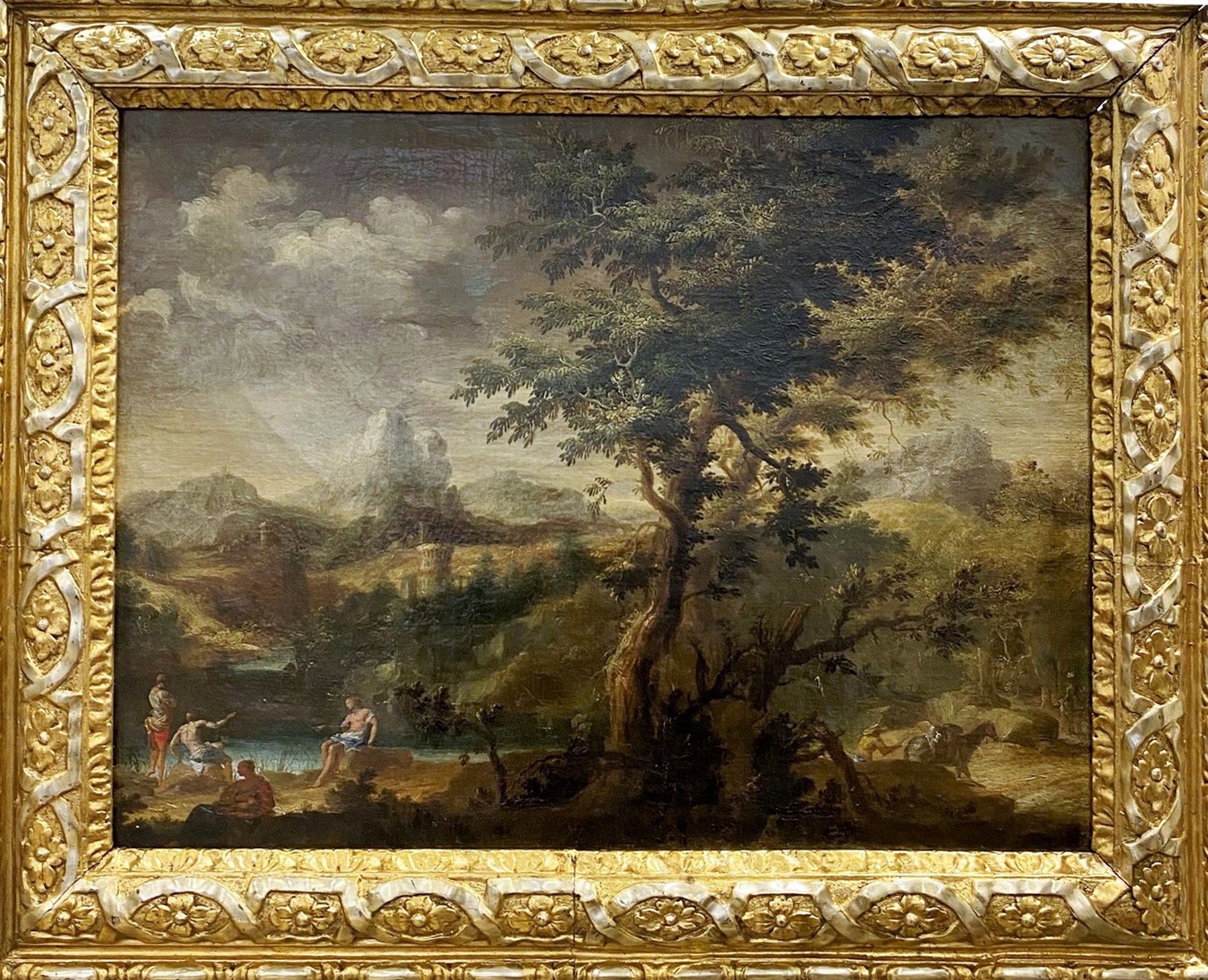 These tormented landscapes with imposing, tortuous trees, sometimes uprooted or scratched by successive storms is characteristic of these Neapolitan Baroque landscape painters of the early 18th century.