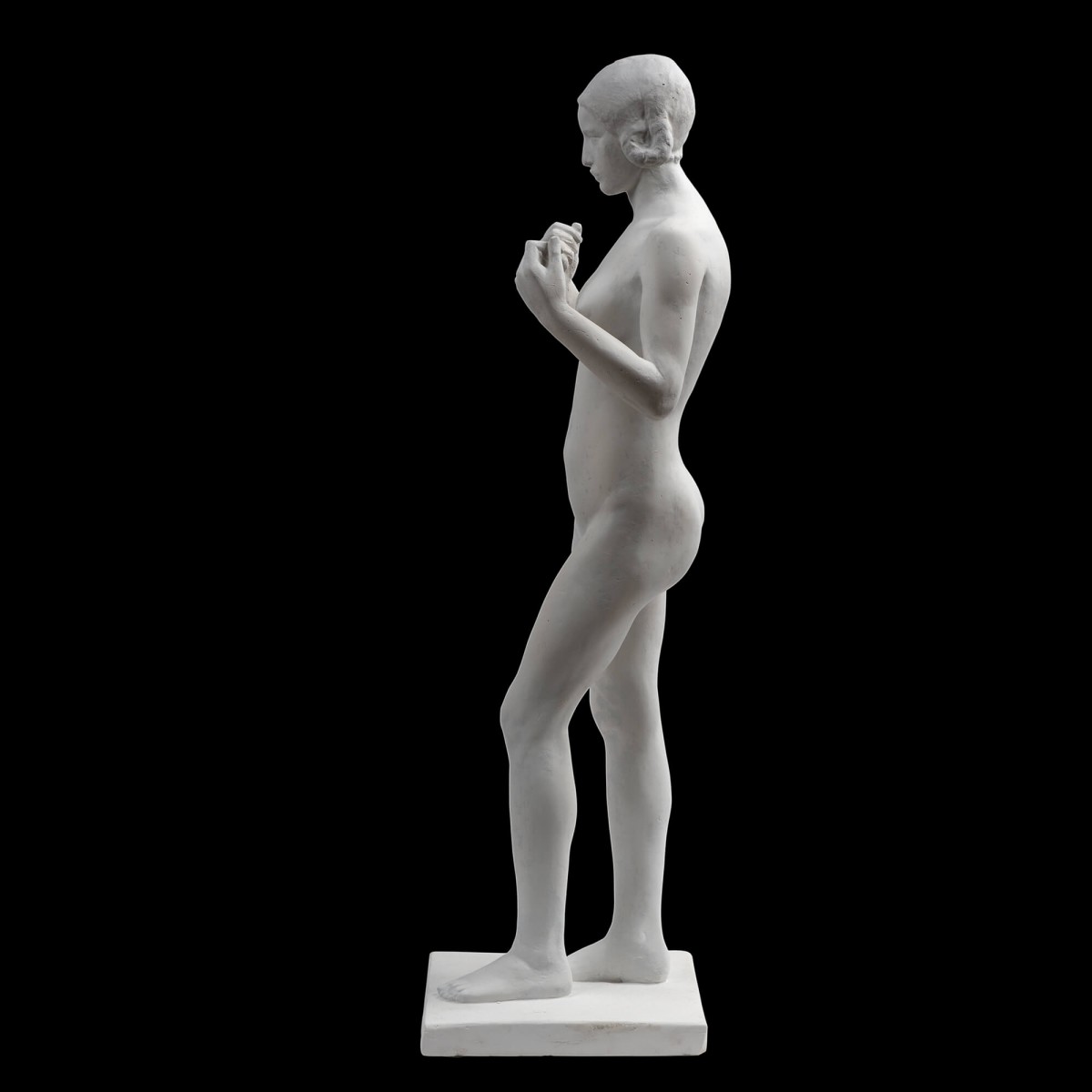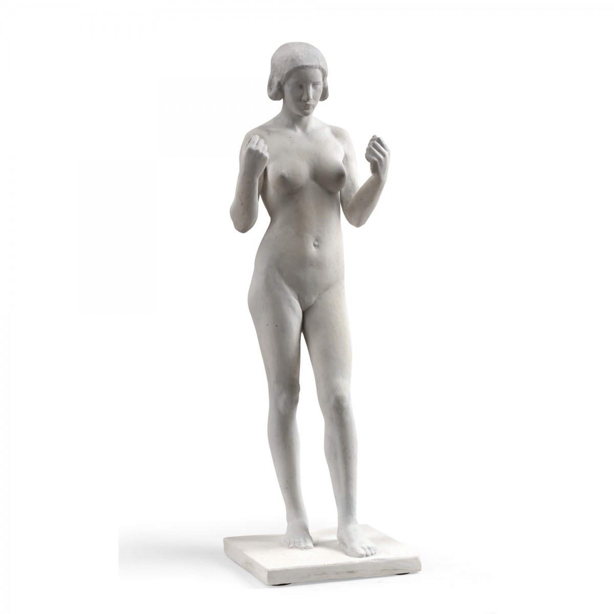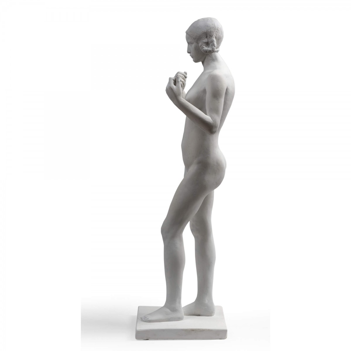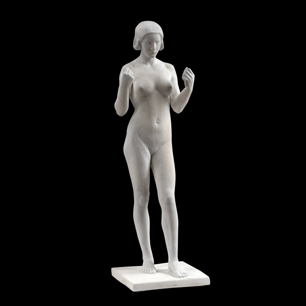 This plaster work reflects the artist’s sensitivity to the female body, captured in its simplicity and quiet presence.