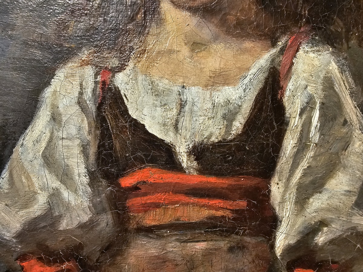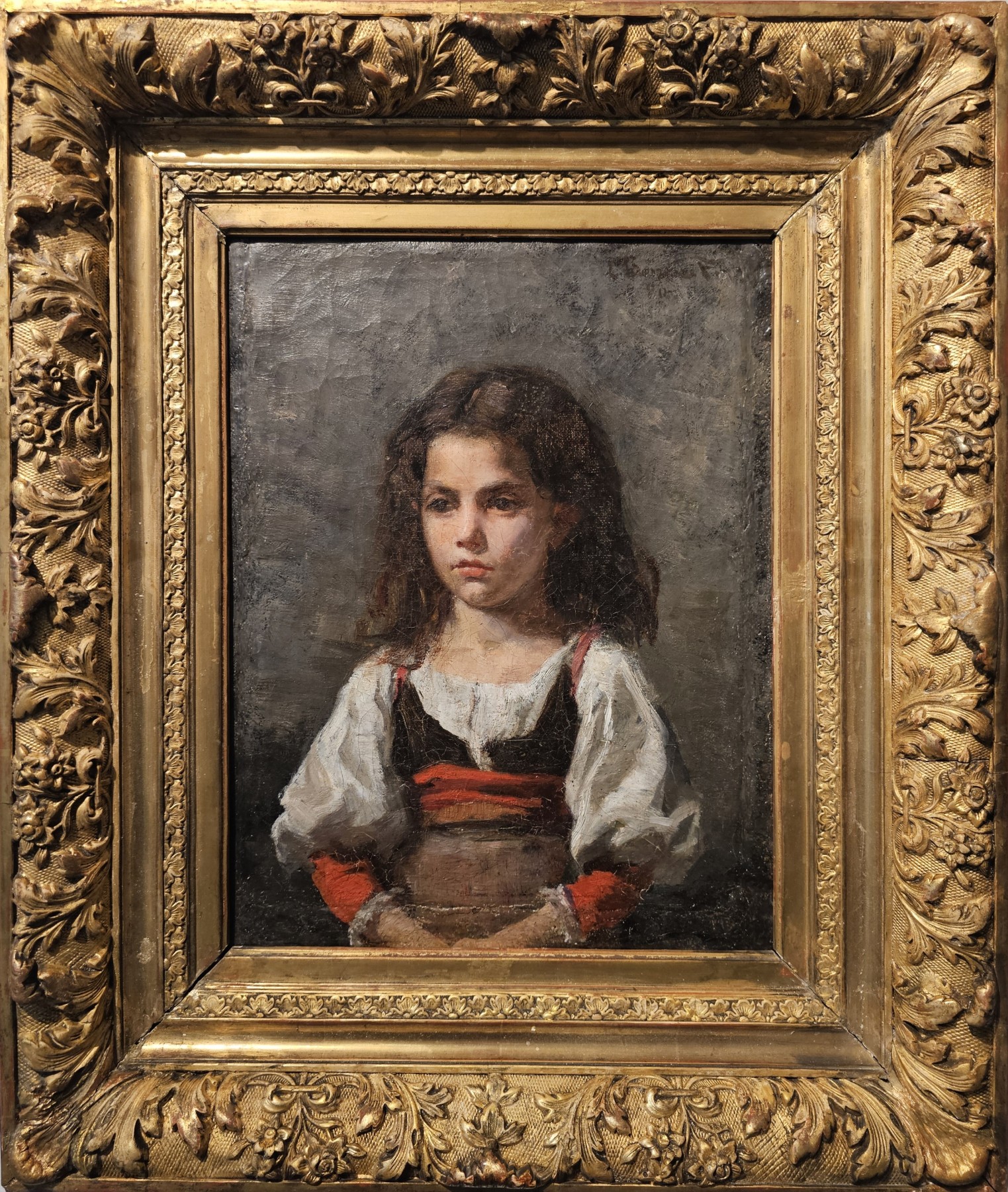 Master of 19th century French portraiture Léon Bonnat is one of the representatives of French academic realism. He is influenced by the many trips he made to Spain and Italy. Professor at the École des Beaux-Arts, he trained several generations of painters such as: Henri de Toulouse-Lautrec, Gustave Caillebotte, Raoul Dufy, Emile Othon Friesz and many others. Between 1900 and 1922 Léon Bonnat directed the National Museums and bequeathed a large part of his collection of paintings, drawings and sculptures to the Bonnat-Helleu Museum in Bayonne upon his death. Léon Bonnat's paintings are exhibited in major museums such as the Louvre, the Metropolitan Museum, the Musée d'Orsay and the Château de Versailles. This work represents a young Italian girl with a melancholic look, dressed in a black and red bodice over a white shirt. The sober composition, the neutral background and the diffused light convey all the finesse of Bonnat's style, mixing realism and contained emotion. The rendering of the face and the fabrics testifies to a great technical mastery, a sense of detail and a quest for humanity in the portraits he paints. The artwork is signed and dated in the upper right corner.