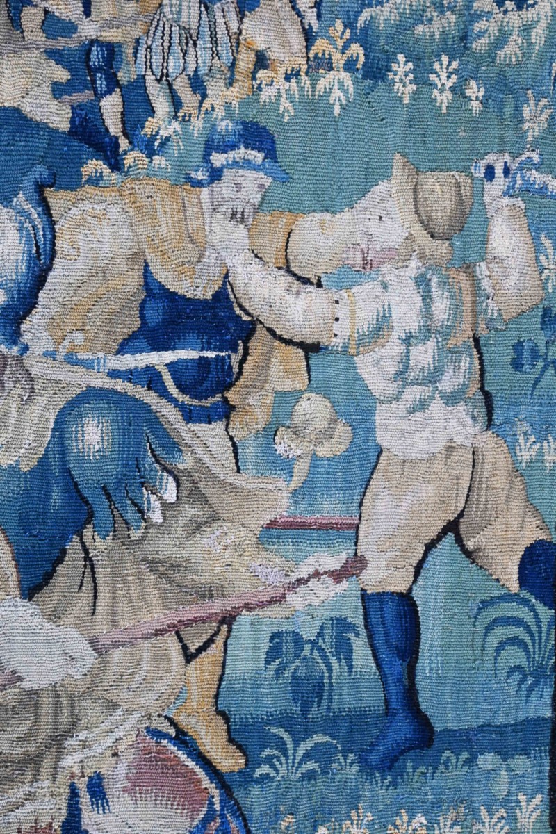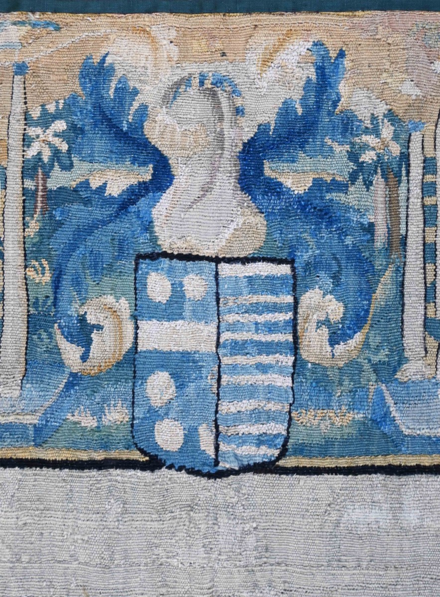 Expert note: This tapestry is a rare example from the era when Flanders was the world center for the art of weaving, combining sacred history, military bravery, and genealogical pride.